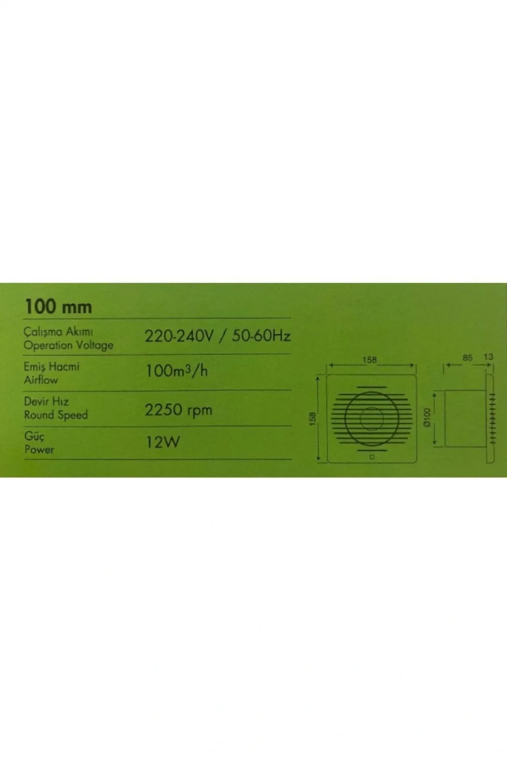 Hava çıkış çapı : 100 mm/10cm; Mutfak/Banyo/WC gibi iç mekandaki koku, duman, buhar vs. dışarı atılmasına yardımcı olur.; Pencere(Cam),duvar veya tavana monte edilebilir.;