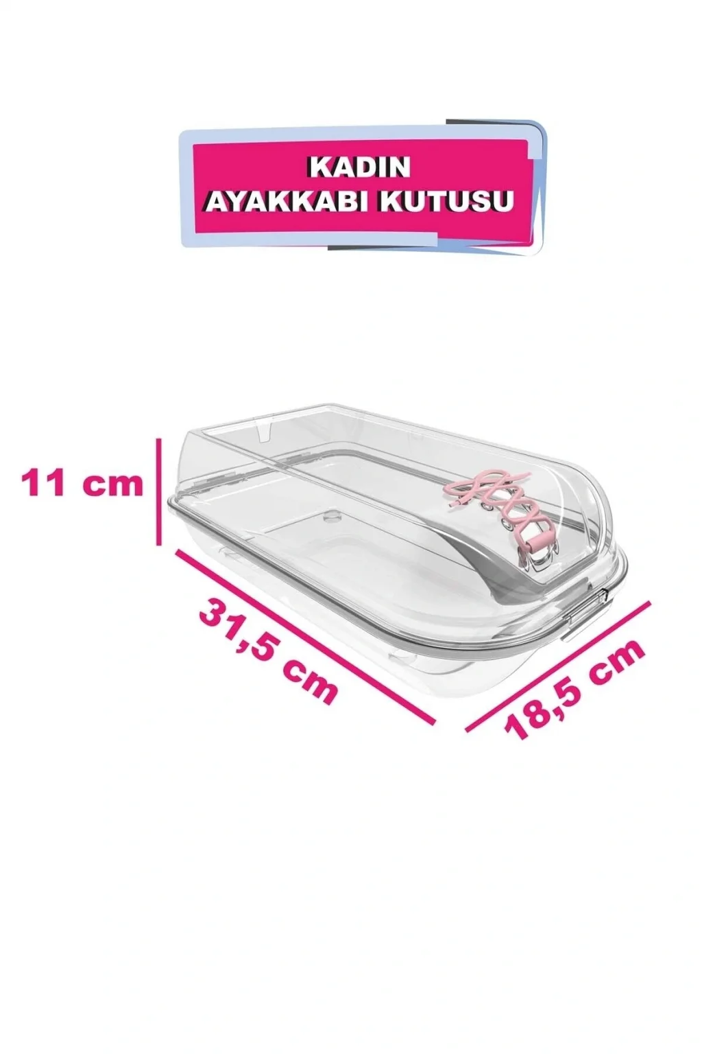 1. Sınıf Hammadde'den üretilmiştir. ; Tutma bölümü sayesinde kolayca taşınabilir. ; Haval alma özelliklidir. ; 41 no ayakkabıya kadar uygundur. ; Katlanabildiği ve iç içe geçebildiği için kullanmadığınız zamanlarda kutular yer kaplamaz ; Yazlık-kışlık sezonlarda ayakkabılarınızı derli toplu saklamanıza olanak sağlayacak pratik bir ürün. ; Şeffaf ayakkabı kutusunun yanlarında yer alan havalandırma bacaları sayesinde ayakkabılarınız kutudayken hava alır. ; Ayakkabılarınızı Kokusuz ve Düzenli Bir Şekilde Saklayabilirsiniz. ; HACİM: 4,5 LT ÜRÜN ÖLÇÜLERİ : EN: 38 Cm BOY: 31 Cm YÜKSEKLİK: 13,5 Cm ;