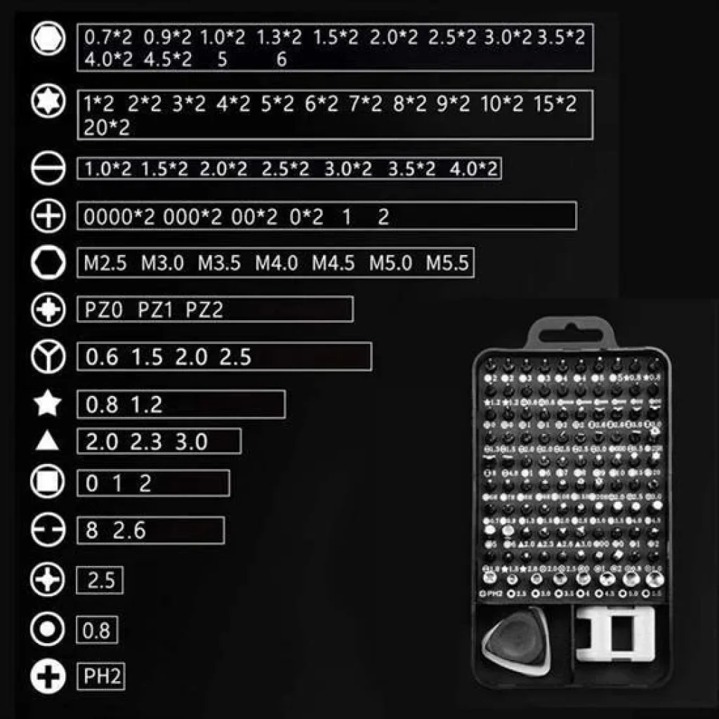 Paket İçeriği: 1 x 115 in 1 Hassas Tornavida Onarım Aletleri Seti, Manyetik Sürücü Kitli, Elektronik Hassas Tornavida Seti, Bilgisayarı ve Telefon Onarım Seti