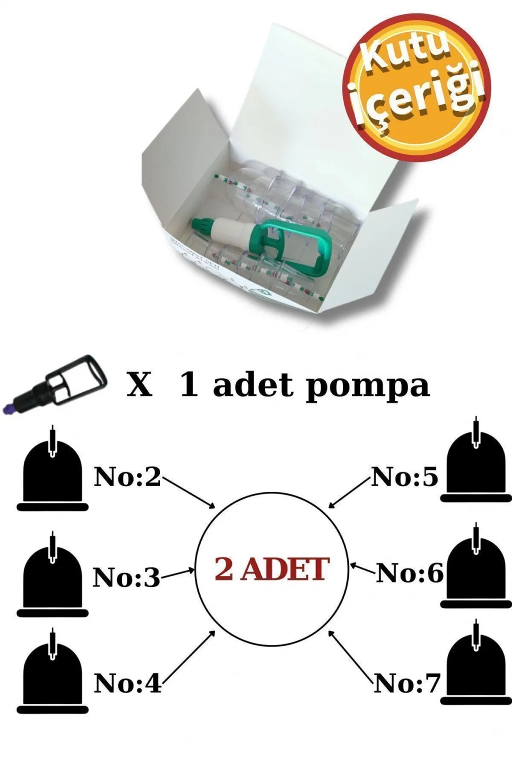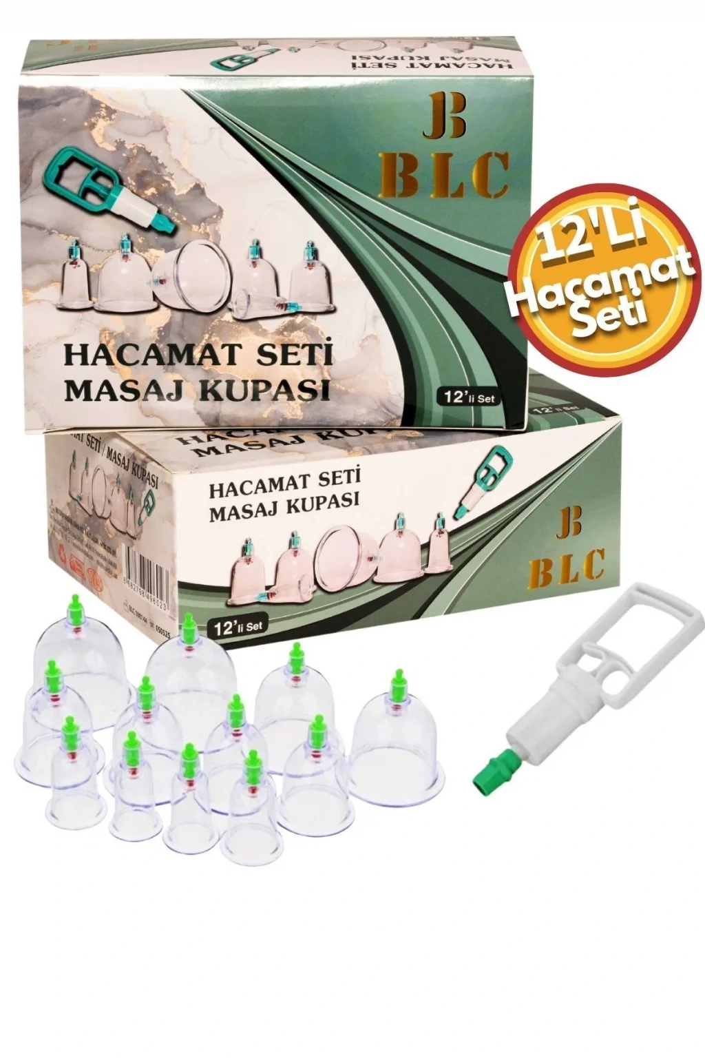 Hacamat, vücuttaki kanı belirli noktalardan çıkarmak amacıyla vakumlu kapların kullanıldığı geleneksel bir tedavi yöntemidir.; Bu uygulama, eski çağlardan beri farklı kültürlerde sağlık sorunlarının tedavisinde kullanılmıştır.; Hacamatın temel prensibi, vücuttaki kan dolaşımını iyileştirerek ve toksinleri atarak sağlığı desteklemektir.; Kan dolaşımındaki düzensizliklerin ve birikmiş toksinlerin birçok hastalığa yol açabileceği düşünülerek, hacamat tedavisi uygulanır.; Bunun yanı sıra bazı kültürlerde hacamatın; bedensel ve zihinsel dengeyi sağlama, stresi azaltma ve enerji akışını düzenleme gibi daha geniş bir amaca hizmet ettiği düşünülmektedir.; Günümüz modern tıbbında, bazı durumlarda hacamat destekleyici bir tedavi yöntemi olarak kullanılmaktadır.; Hacamat, özellikle kronik ağrıların ve belirli sağlık sorunlarının tedavisinde alternatif bir seçenek olarak değerlendirilmektedir.; 12'li hacamat kupa seti 12'li hacamat kupa setimizin içeriğinde; 2 cm 2 adet ; 3 cm 2 adet ; 4 cm 2 adet ; 5 cm 2 adet ; 6 cm 2 adet ; 7 cm 2 adet ; Toplamda 12 adet kupa ve 1 adet iki parmak hacamat pompası bulunmaktadır.; Numaralar kupaların ağzının ölçüsü kaç cm ise ona göre numaralandırılır.; Hacamat kupaları tek kullanımlıktır.; Hacamat kupasını kullanabilmek için iyi bir hacamat pompasına gereksinim duyulmaktadır.; Firmamızda kupalarımız ile uyumlu, özel malzemeden üretilen pompamız mevcuttur.; Cam hacamat kupası ile plastik hacamat kupası arasında hiçbir fark yoktur.; Hacamat kupalarımız %100 yerli üretimdir.; Geri dönüşüm plastiklerinden üretilmemiştir.