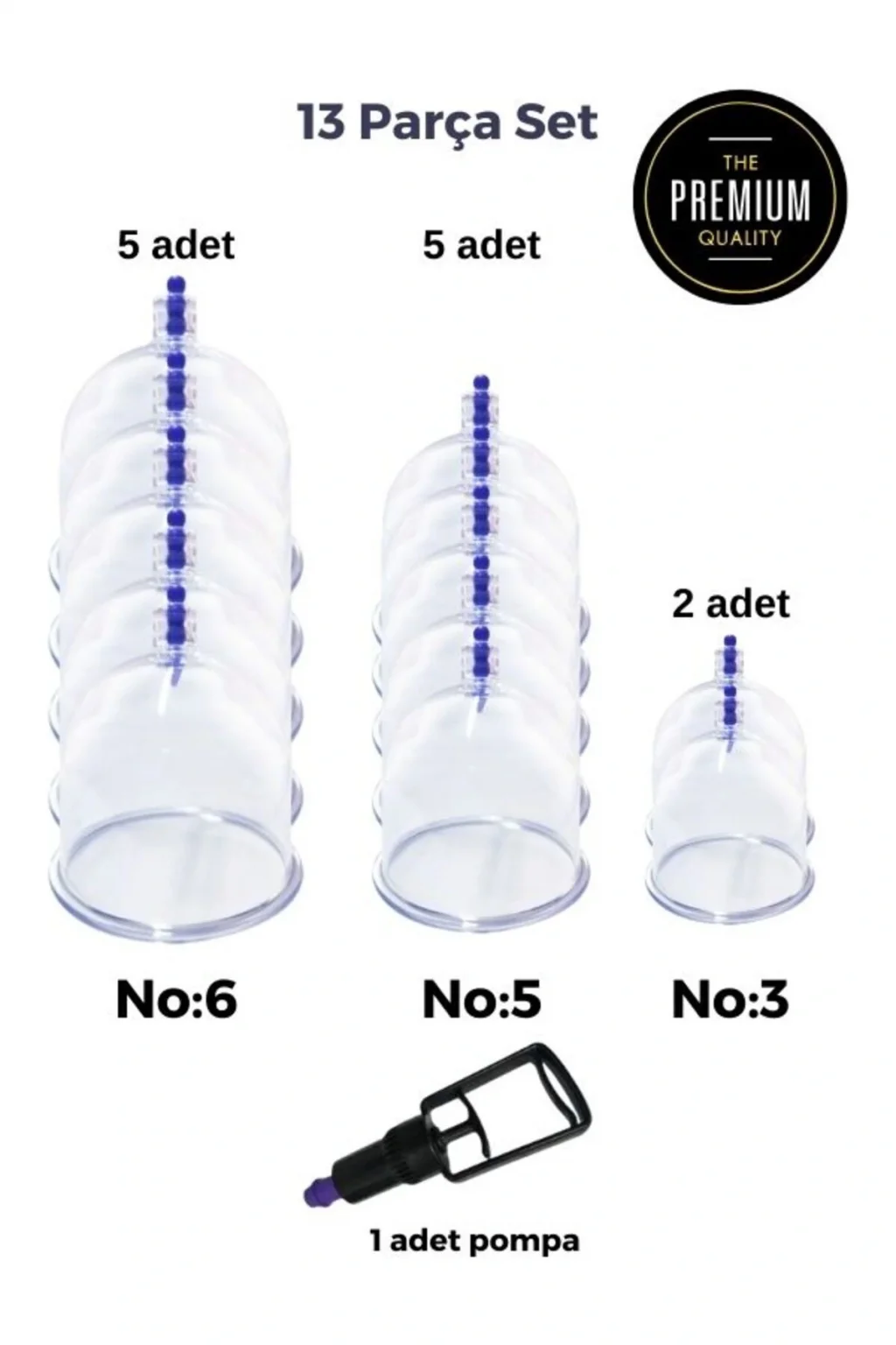 13 Parça Canlandırıcı Selülit Ve Çatlak Giderici Kupa Çekme Vakumlu Masaj Aleti - Hacamat Seti