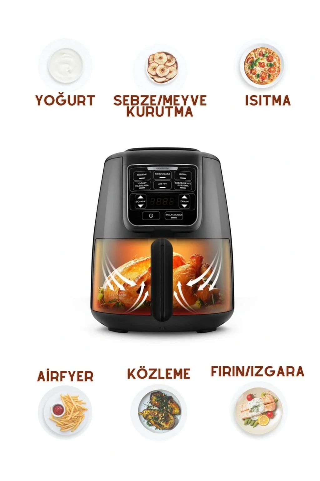 Basınç kontrol özelliği sayesinde, pişirme işlemlerinizi kolayca yönetin ve mükemmel sonuçlar elde edin; - Zamanlayıcı fonksiyonu ile yemeklerinizi tam istediğiniz zaman pişirin; zamanınızı daha verimli kullanın; - Şık siyah tasarımı ile mutfak dekorasyonunuza modern bir dokunuş katın;