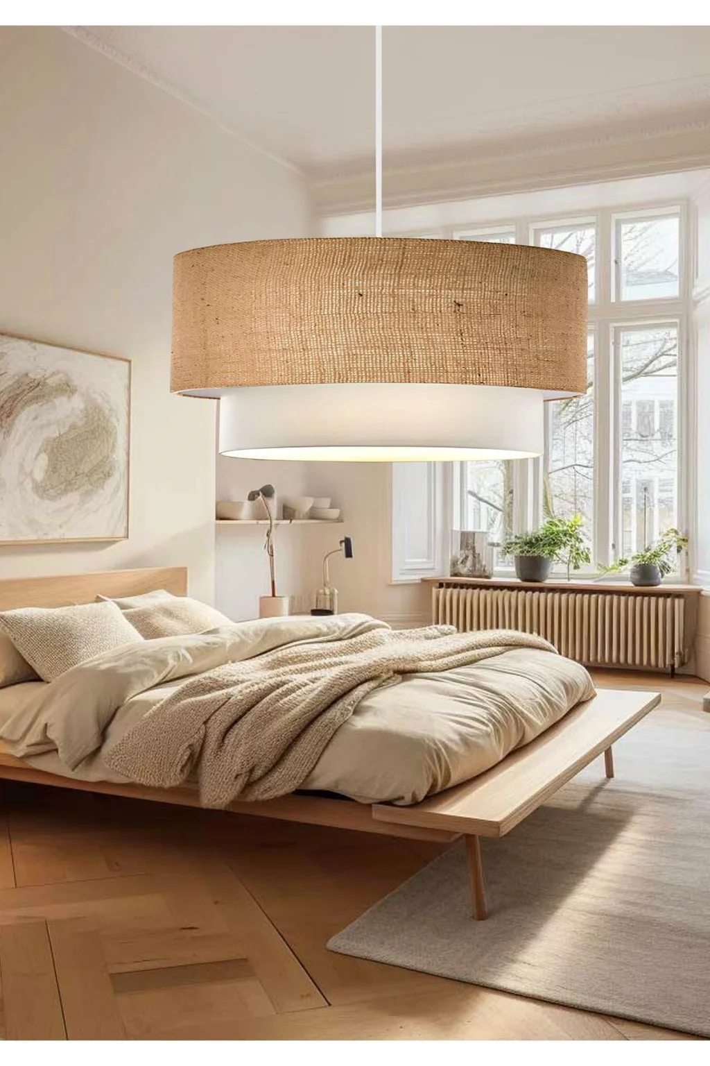 E27 duy tipi sayesinde geniş bir ampul seçeneği sunar ve kolayca değiştirilebilir; Yüksek kaliteli kumaş materyali ile uzun ömürlü kullanım ve dayanıklılık sağlar; Salon ve oturma odası gibi geniş alanlar için idealdir, mekana şık bir dokunuş katar; Modern tasarımı ile evinizin dekorasyonuna çağdaş bir hava katarken, bohem stilini yansıtır;