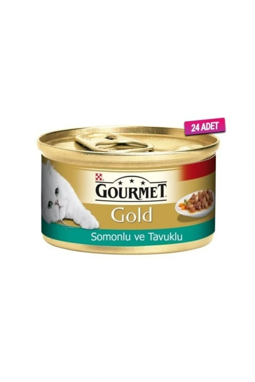 GOURMET GOLD SOSLU SOMONLU VE TAVUKLU YETİŞKİN KEDİ KONSERVESİ 85 GR. ; Pro Plan Gourmet Gold Somonlu Tavuklu Kedi Konserve Maması kahverengi soslu et taneciklerinden üretilmiştir. ; Somon ve tavuk etinin kahverengi bir sos ile karışımı kediler için vazgeçilmez bir lezzet sunmuştur Malzemeler: İşlenmiş et ve et ürünleri (% 4 somon, tavuk ,% 4), bitkisel protein özü, mısır, tarafından balık ve balık yan ürünleri, mineraller, bakır sülfat (bakır / kg 1.1 mg) yan ürünleridir. ; Besin içeriği: Ham protein% 10, ham yağ% 2.3 Ham kül% 1,7, ham selüloz% 0,5 Vitamin C: / kg D3 vitamini 1110 IU: 140 IU / kg E vitamini (alfa tokoferol) : / kg 10 IU. ; vitamin seviyeleri tüm raf ömrü garantilidir. ; Tavsiye Beslenme: Ortalama ağırlığı (4 kg) erişkin bir kedi için günde 3 ila 4 kutu gerektirir. ; Besleme tercihen iki öğün halinde verilmesi tavsiye edilir. ; Oda sıcaklığında servis yapın fabrika seri numarası ve kayıt numarası son kullanma tarihi kutu altındadır son kullanma tarihine kadar tazeliğini korur 30 ° C ve% 75 bağıl nem 5 arası sıcaklıkta saklayın. ; Kargo Teslim Uyarısı: Değerli müşterilerimiz, kargonuzu teslim almadan önce ürününüzü kontrol ediniz. ; Tüm ürünlerimiz orijinal kolileri içerisinde yollanmaktadır. ; Göndermiş olduğumuz koliyi kargo elemanının yanında açınız ve içindeki malları kontrol ediniz. ; Size gönderilen üründe bir hasar mevcut ise hemen kargo görevlisine Hasar Tespit Tutanağı tutturunuz ve hemen Müşteri Hizmetlerimizi arayarak bize bildiriniz aksi taktirde imzaladığınız kargo teslim fişi ürünü eksiksiz ve sağlam bir şekilde teslim aldığınız anlamına gelir. ; Hasar Tespit Tutanağı tutulmayan iade veya şikayetleriniz kabul edilmeyecektir. ; İyi alışverişler dileriz.;