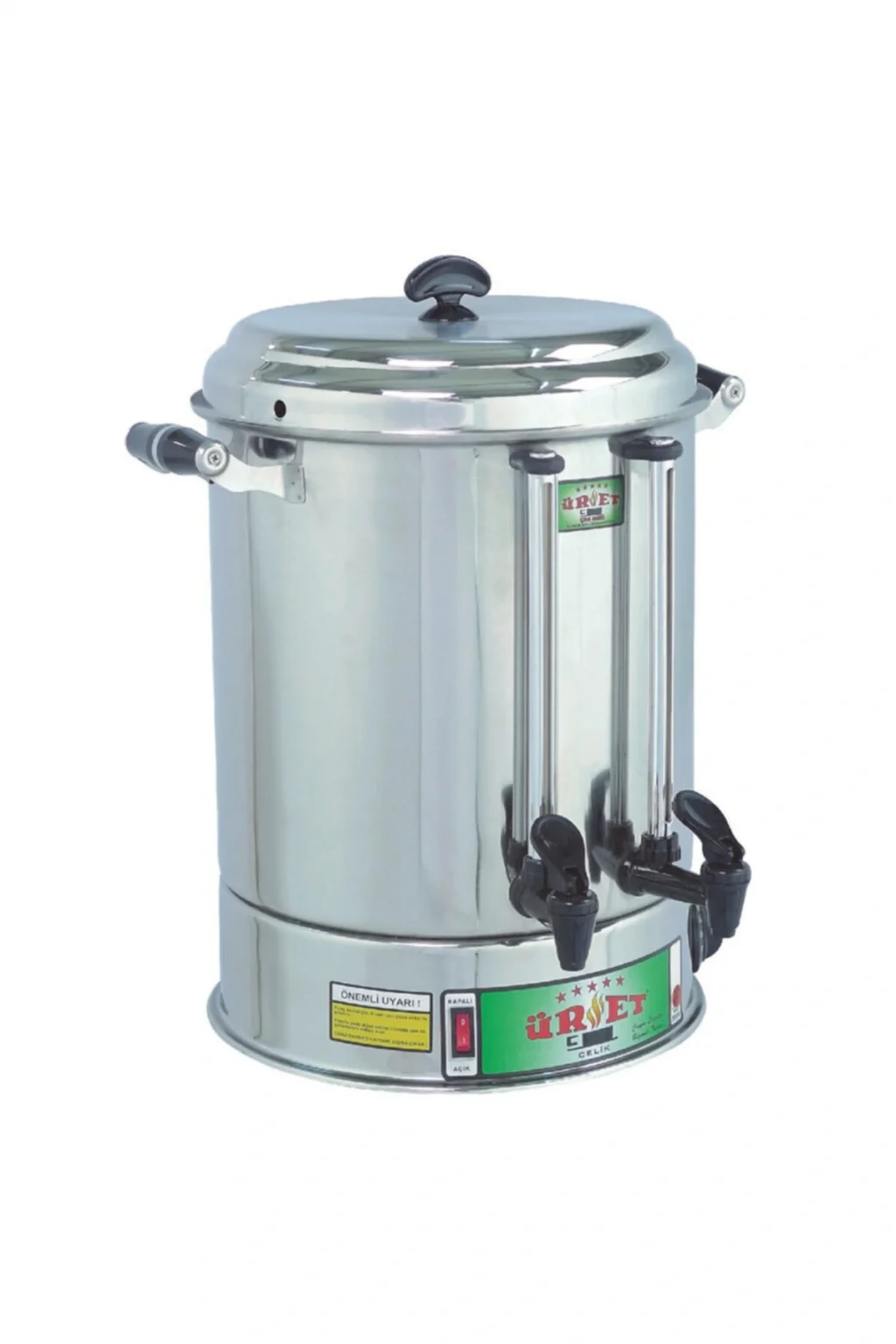 - 22 litre kapasiteye sahip bu elektrikli çaydanlık, büyük aileler ve misafir ağırlamak için idealdir; - Dayanıklı çelik materyali sayesinde uzun ömürlü kullanım sunar ve kolay temizlenebilir yapısıyla pratik bir deneyim sağlar; - Parlak çay makinesi, hızlı ve etkili bir şekilde çay demleme imkanı sunarak zaman kazandırır; - Çaydanlık, modern tasarımı ile mutfak dekorasyonunuza şık bir dokunuş ekler;