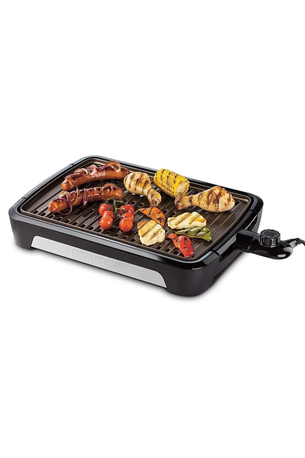 George foreman 25850-56 smokeless bbq ızgara – büyük boy barbekü sevenler? Duman sevmeyenler? Bu ızgara tam sizin isteğinize göre.; Bratwurst sosisli sandviç gibi yemekler için ateşleyin ve maksimum lezzet, sıfır duman, kalıcı kokular veya yağlı ızgaralar elde edin.; Dumansız barbekü ızgaramızın akıllı plakası - Sıcak yağı doğrudan aşağıdaki damlama tepsisine yönlendirmek için tasarlanmıştır - Yağı anında soğutur ve dumanı %80*** ortadan kaldırır.; Yağlı duman yerine içeride açık havada yemek pişirmenin ve iştah açıcı barbekü aromalarının tadını çıkarın.; • kablo sarmalı dikey saklama • 1630 w