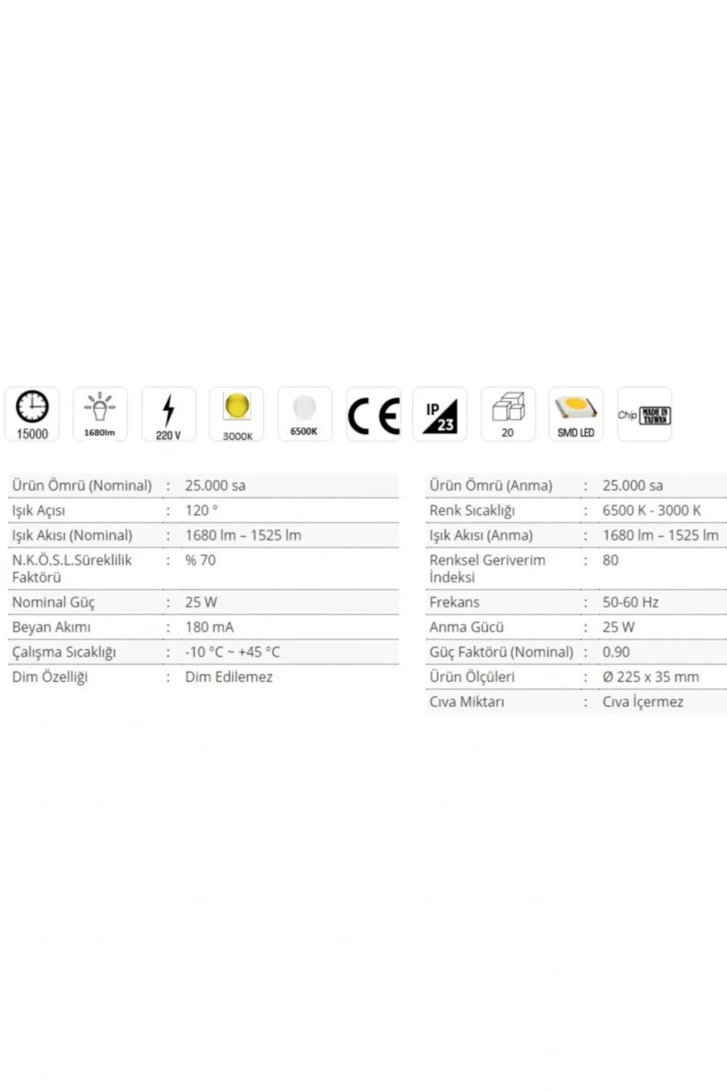Genel Ürün 30 Watt Panel Led Armatür Sıva Üstü Yuvarlak Ct 5273 Günışığı Sarı Işık 3200k Plastik Kasa