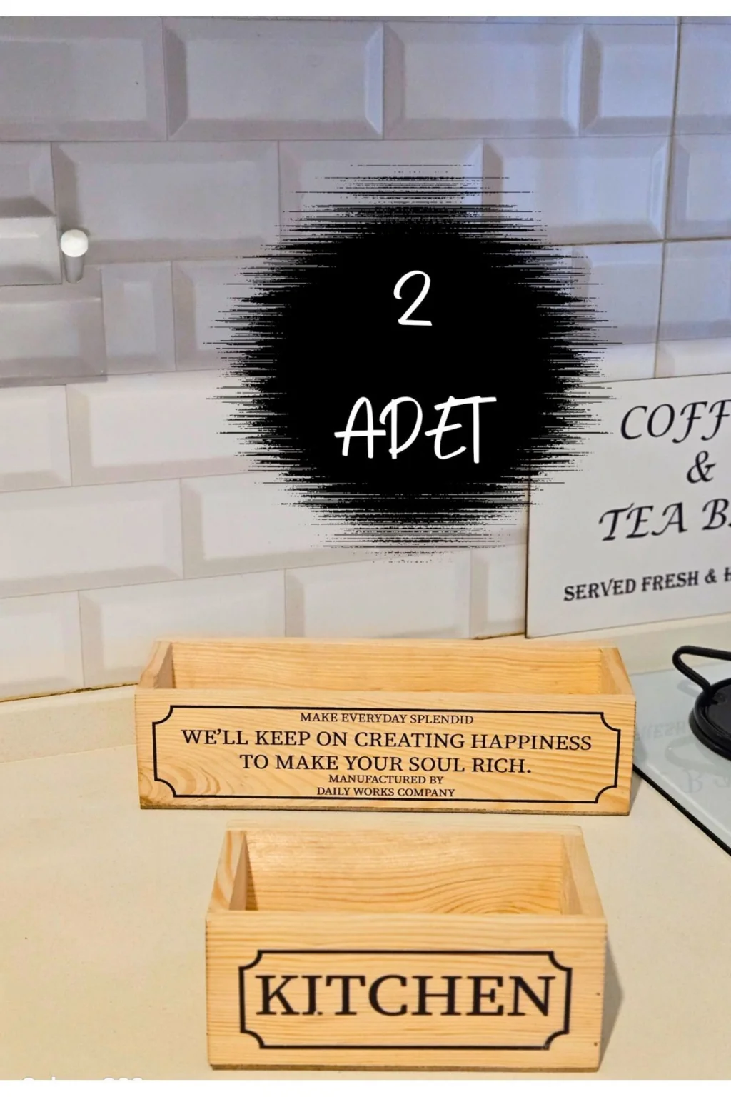 Genel Ürün 2'li ahşap kasa organizer stand, baskılı, çok amaçlı düzenleyici 20x11 cm 30x11 cm