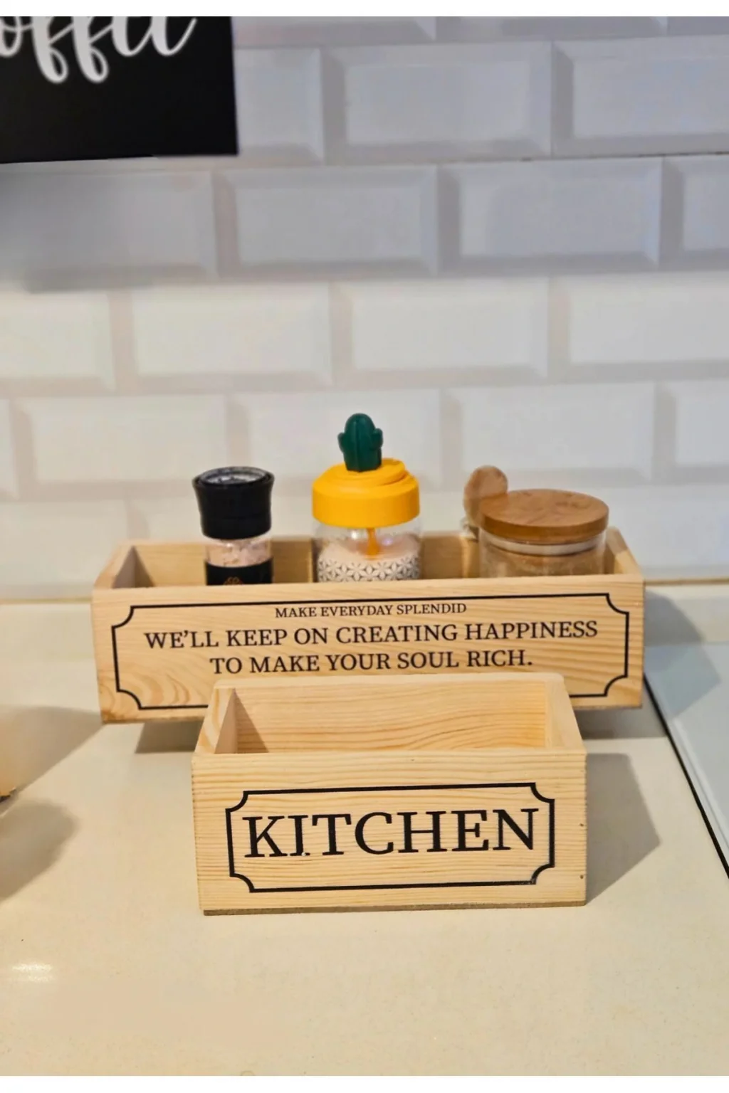 Genel Ürün , Şık Ahşap Mutfak Düzenleyici Kutu 35x12, Klasik ve Bej Tasarım