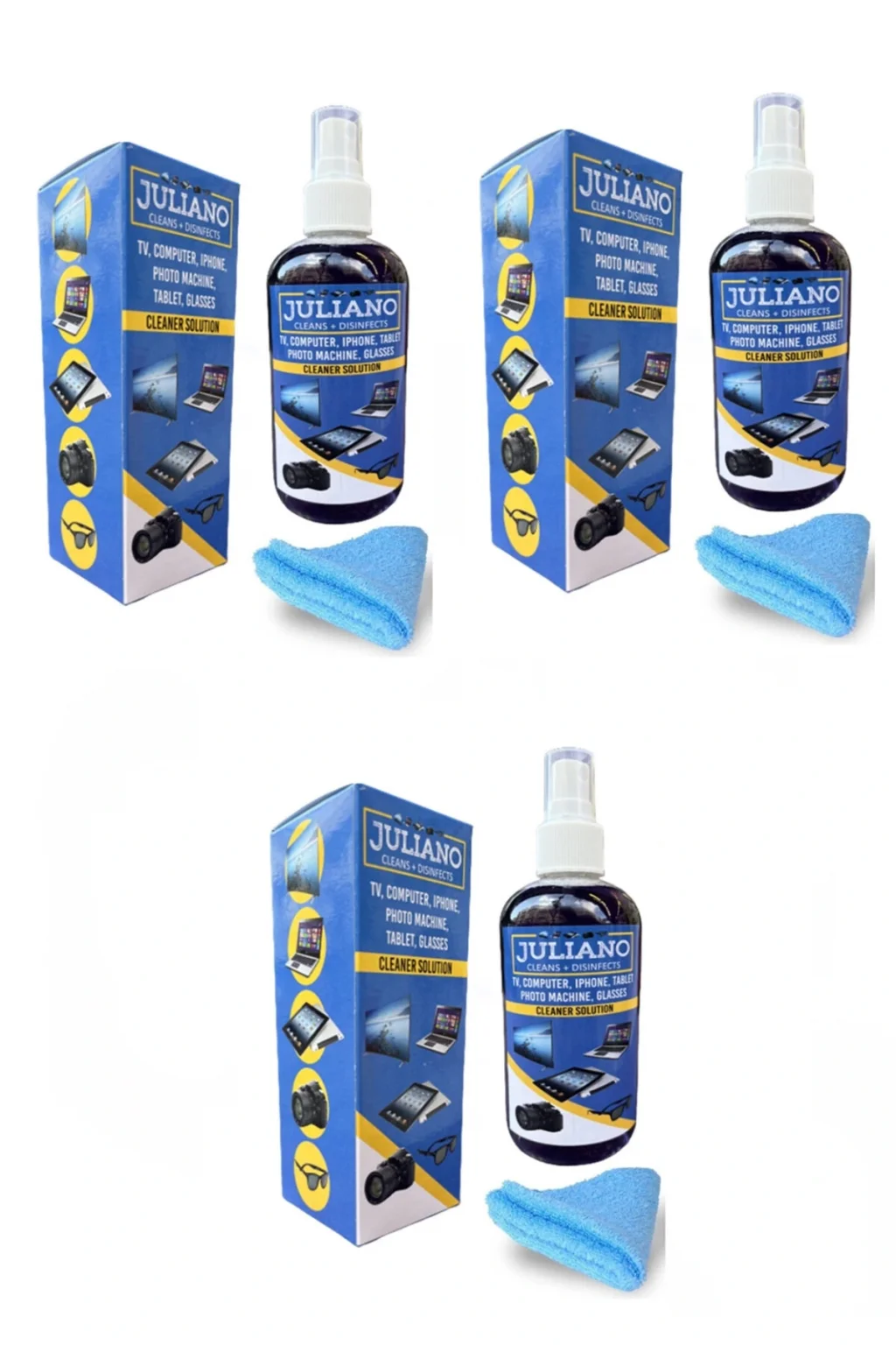 JULIANO Lcd, Led, Ekran, Laptop, Tablet, Bilgisayar, Televizyon, Cep Telefonu, Gözlük, Kamera, Koruyucu Ve Parlatıcı Doğal Temizleme, Temizlik Seti – 250 ML Temizleyici TEMİZLEME SETİ – 250 ML JULIANO LCD Temizlik Seti Paket İçeriği: Koruyucu ve Parlatıcı Temizleyici Spreyi - 250ml, Mikrofiber Temizlik Bezi: 25cm x 25cm 2007 'den beri tüm elektronik marketlerde ve internette milyonlarca set satılarak kalitesini ispatlamış ürünümüzün tek yetkili üreticisi ve satıcısıyız. ; LCD/LED Ekranlar, Cep Telefonları, TFT, CRT, Plazma, Kamera Lensi, Laptop, PC Monitorleri ve PDA cihazları dahil tüm hassas yüzeylerde uygulanır. ; UV ve antistatik koruma sağlar. ; Yüzeyi dış etkenlerden korur. ; Tozlanmayı ve kirlenmeyi geciktirir. ; Ekran Açık konumdayken uygulanan ilk temizleme ürünüdür. ; Çizmez ve leke bırakmaz. ; Antistatik formülü sayesinde kirlenmeyi geciktirir. ; Silikon, alkol ve toksit madde içermez. ; Su bazlıdır. ; Yanıcı değildir. ; Doğada biyolojik olarak %100 oranda parçalanır. ; Petrokimya içermez.Kullanım Şekli: Temizlemek istediğiniz yüzeye 20-30cm mesafeden püskürtün. ; Birkaç dakika bekleyin. ; Yanında hediyesi olan mikrofiber havlu ile yüzeyi silerek uygulayın. ; Sap Uzunlugu : 140 mmBurun Kemiği : 20 mm Cinsiyet:Unisex Yaş Grubu:Unisex;