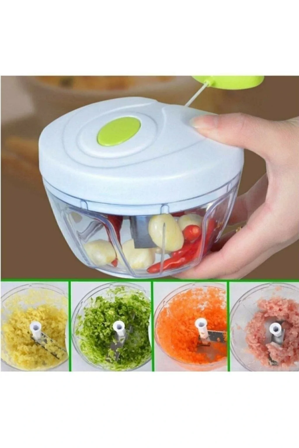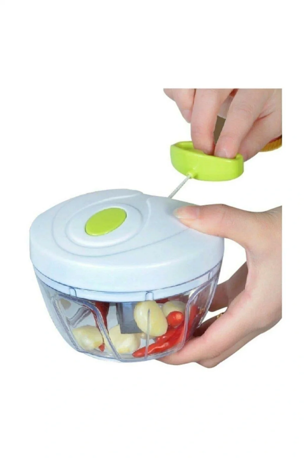 3 Bıçaklı İpli El Rondosu Doğrayıcı Meyve, Sebze, Soğan Doğrama ; Çek bırak pratik doğrayıcı sebzelerinizi hızlı ve kolayca kesebilmenizi sağlayan 3lü bıçak yapısı ve kullanım kolaylığı sağlayan ipli döner mekanizması sayesinde lezzetli tatlar üretebilirsiniz. ; Farklı malzemeler kullanarak birbirinden güzel soslar hazırlayabilirsiniz. ; Birkaç saniyede soğan, sarımsak, havuç ve daha fazlasını doğrayabilirsiniz. ; Kompakt ve hafif yapısı sayesinde mutfağınızda çok az yer kaplar. ; Temizliği çok kolaydır, bulaşık makinesinde yıkanabilir. ; Ürün Özellikleri: ; - Kaliteli plastik gövde ; - Paslanmaz çelik bıçak ; Ürün Ölçüsü: ; Çap: ; 12,5 cm ; Yükseklik: 8,5 cm ;