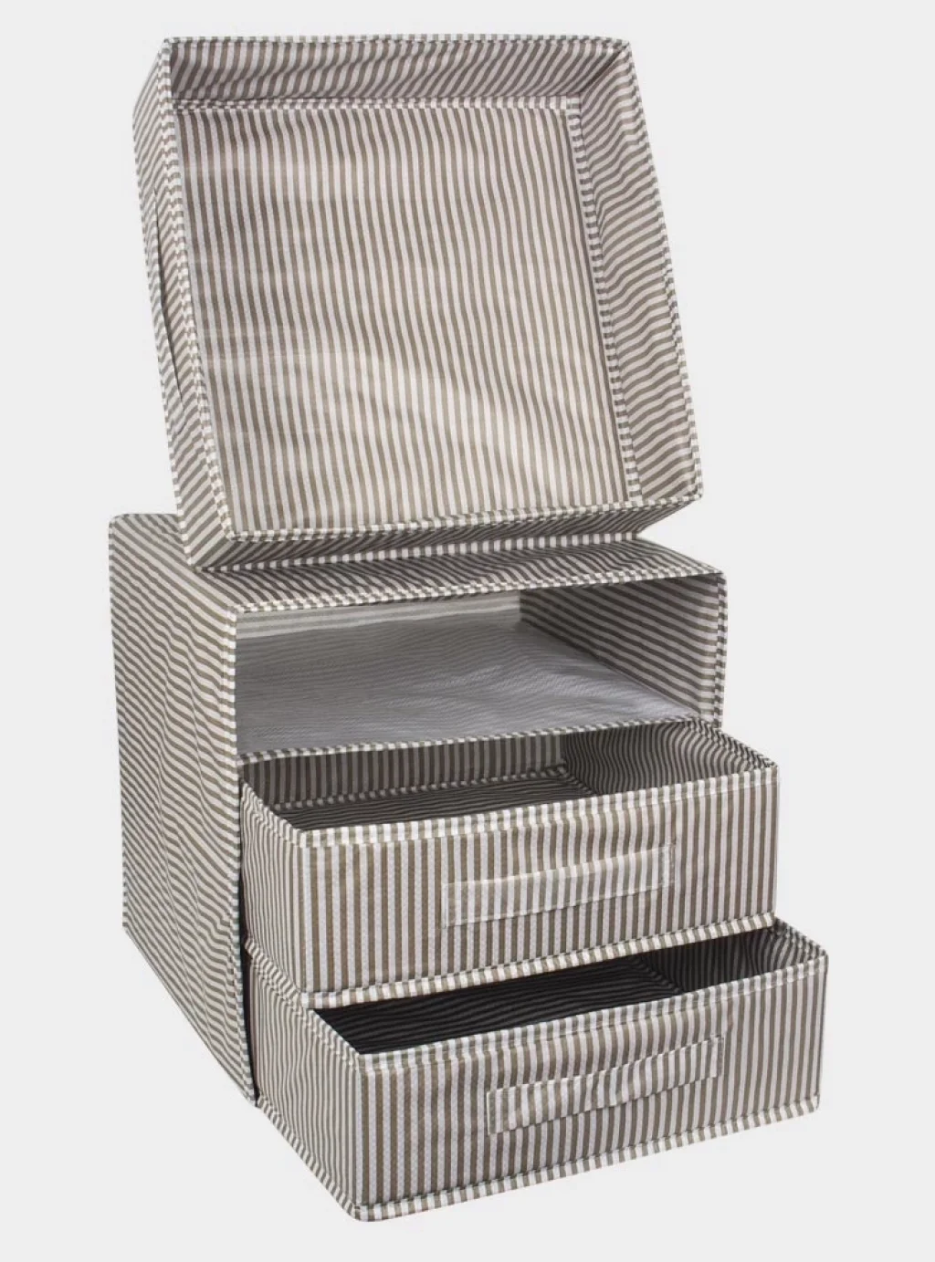 Dolap İçi Düzenleyici Katlanabilir Çok Amaçlı 4 Bölmeli Çizgili Bez Organizer (siyah)