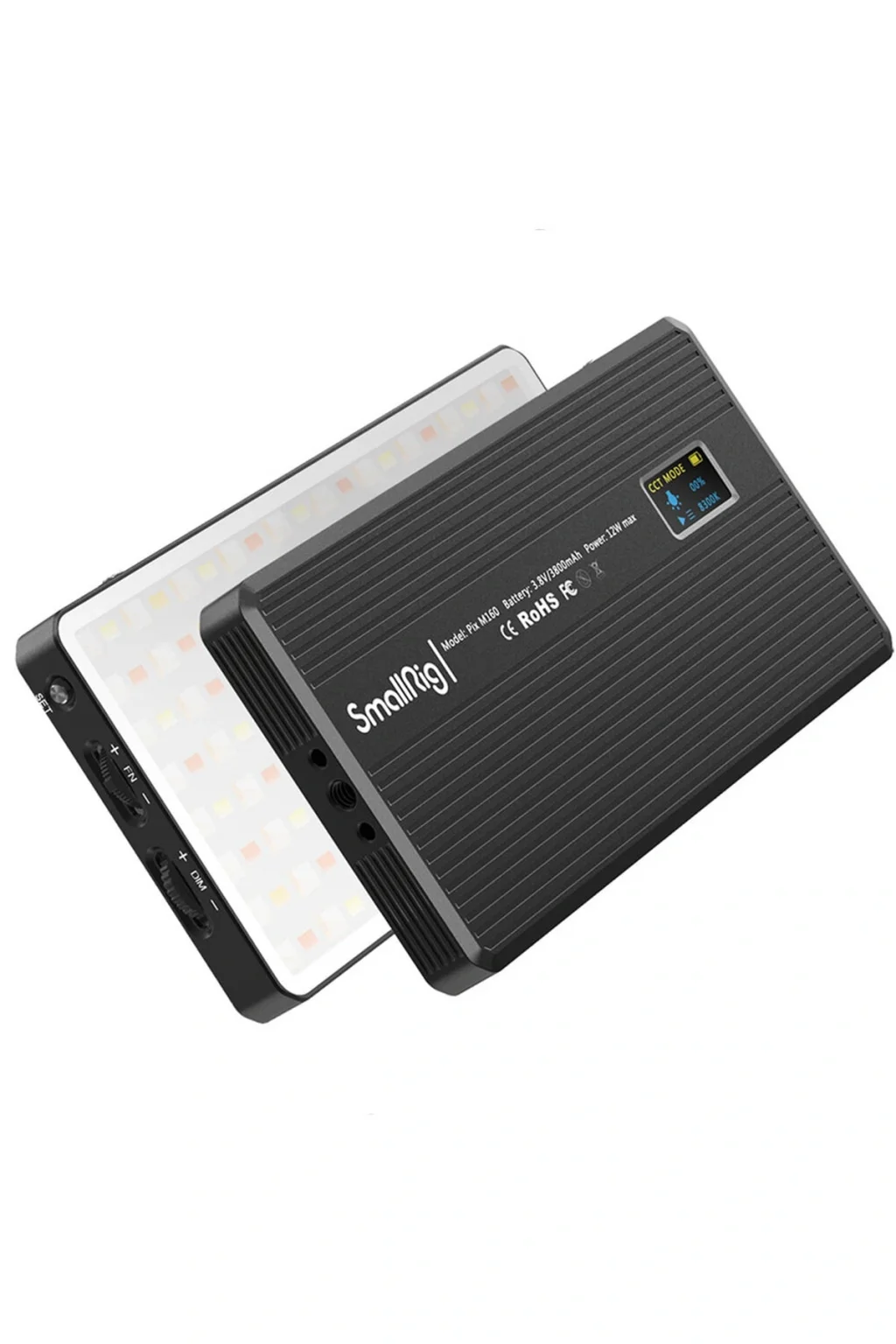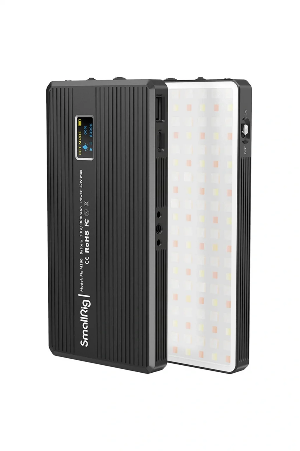 SmallRig 3157 Pix M160 İçin RGB LED Light SmallRig Pix M160 RGBWW LED Light sağlam, mobil ve çok işlevlidir; %0-100 aralığında aydınlık kontrolü, CRI95, TLCI98, 2500K - 8500K aralığında renk ısısı, 360° nüans, 100 seviye satürasyon ayarı ve 12 adet ışıklama efekti sunar. Entegre OLED ekranda parametreler tekerlek, topuz ve butonlar ile kontrol edilir. Ambalaj dahilinde bulunan 3800mAh lityum batarya USB Type-C kablo ile doldurulur ve kapalı olduğunda dahili USB girişi ile telefonu dolduran bir power bank olarak görev yapar. Lamba manyetik olarak sabitlenebilir veya küre kafa 761 ve dahili 1/4" -20 kaymaz delik ile doğrudan bir makineye veya kafese monte edilebilir. Ambalaj dahilinde bulunan petek ızgara ve difüzör ile farklı ortamlar yaratabilirsiniz. Özellikler: CCT aralığı: 2500K-8500K ; Full HSI renk kontrolü vardır ; 12 adet ışık efekti: Polis arabası lambası / İtfaiye lambası / Ambulans lambası / RGB renkler (hızlı) / RGB renkler (yavaş) / RGB Strob flaş / Aydınlatma 1 / Aydınlatma 2 / Paparazzi / Mum ışığı / Ekran ışığı / Anlık ışık ; Çeşitli aksesuarlar: küre kafa, doldurma kablosu, çanta, petek ızgara, difüzör ; Seyyar, 3800mAh batarya var ; Renk ısısı: 2500K-8500K ; CRI: 95+ ; TLCI: 98 ; Aydınlık: 1350Lux (0.5m) ; Batarya Tipi: Lityum-ion Batarya (3.8V/3800mAh) ; Güç: 12W ; Çalışma ısısı: 0?- 45? ; Ürün boyutları: 158 x 80 x 12.4mm ; Ambalaj boyutları: 199 x 116 x 70mm ; Net ağırlık: 230g±5g ; Ambalaj ağırlığı: 711g±5g ; Materyal: Alüminyum Alaşım ; Ambalaj içeriği: 1 x LED Lamba ; 1 x Petek ızgara ; 1 x Işık Difüzör ; 1 x Küre kafa 761 ; 1 x USB Type-C Doldurma kablosu ; 1 x Çanta ; 1 x Kullanım kılavuzu ;