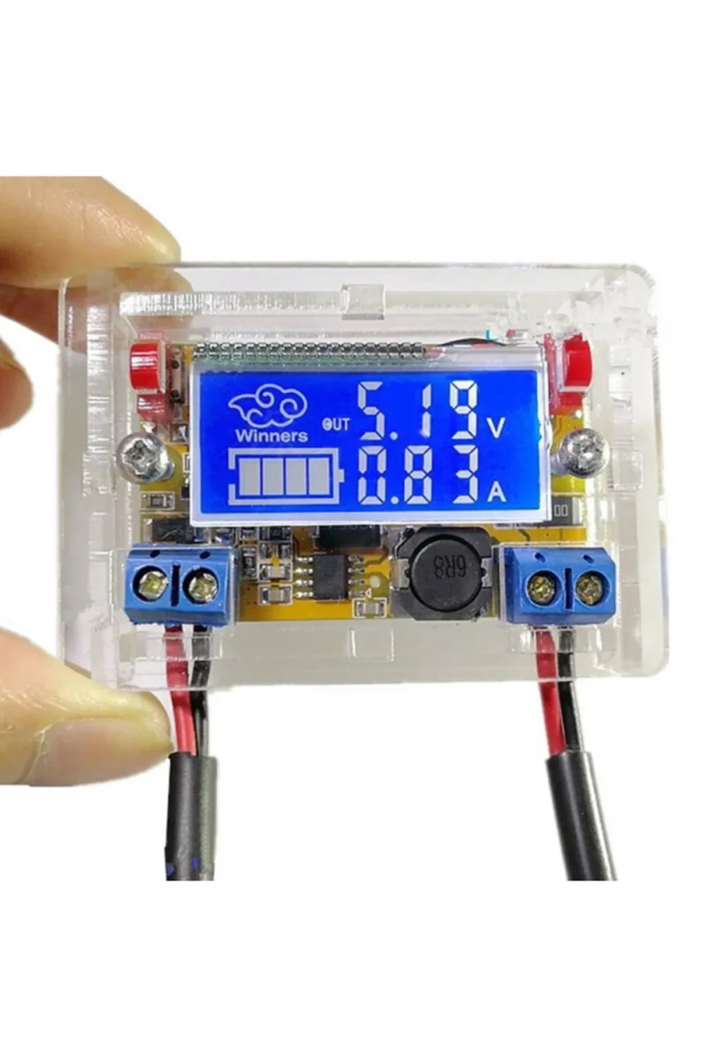 3A Ayarlanabilir Ekranlı Voltaj Düşürücü Güç Kaynağı Modülü + Pleksi Kutu En yüksek giriş voltajı DC 23V.; Daha yüksek voltaj uygulanırsa ürün bozulur.; Lcd ekranlı voltaj düşürücü modül.; Akım ve voltaj bilgileri lcdde gösterilmektedir.; Üzerindeki 2 buton yardımı ile voltaj artırılıp azaltılabilmektedir.; Voltaj artma azalma adımı 0.04V tur.; Butonlara uzun basıldığında artma azalma hızlanır.; 3A akım veme kapasitesi bulunmaktadır.; Giriş voltajının 1.5V daha düşük seviyesi ile 0V seviyesi arasında voltaj ayarı dijital olarak yapılabilmektedir Ürün koruyucu pleksi kutu ile birlikte gönderilmektedir.; Kutu demonte haldedir.; Kalibrasyon yöntemi: Güç kapalı durumdayken, sol tuşa basılı tutuarak ürüne enerji verin.; Ekran yanıp sönmeye başlayacak.; Multimetre ile çıkış voltajını ölçerek sağ sol butonlarla çıkış voltajını 5V a ayarlayın.; Ayarlama bittiğinde enerjiyi kapatıp acın.; Ürünü kullanmaya devam edebilirsiniz.; Özellikler: Dönüştürücü tipi: DC-DC ; Giriş voltajı: 5 ~ 23V ( 20V üzerinde kullanılmamasını tavsiye ederiz.; ) ; Çıkış gerilimi: 0V ~ 16,5V (Sürekli ayarlanabilir) ; Ayarlanmış voltaj seviyesi hafızada saklanır.; ; Akım: 3A Maksimum ( 2A altında kullanılması tavsiye ederiz ) ; Ters bağlantı koruması ; Mavi beyaz lcd ekran ; LCD doğruluğu:% 1 ; Verim:% 95 ; Pleksi kutu ; Lcd boyutu: 37.5 mm x 17mm ; Ürün boyutu: 50mm x 30mm x 12mm ; Ağırlık 45gr ; Paket İçeriği: 1 Adet 3A Ayarlanabilir Ekranlı Voltaj Düşürücü Modül ; 1 Adet Pleksi Kutu Parçaları ;