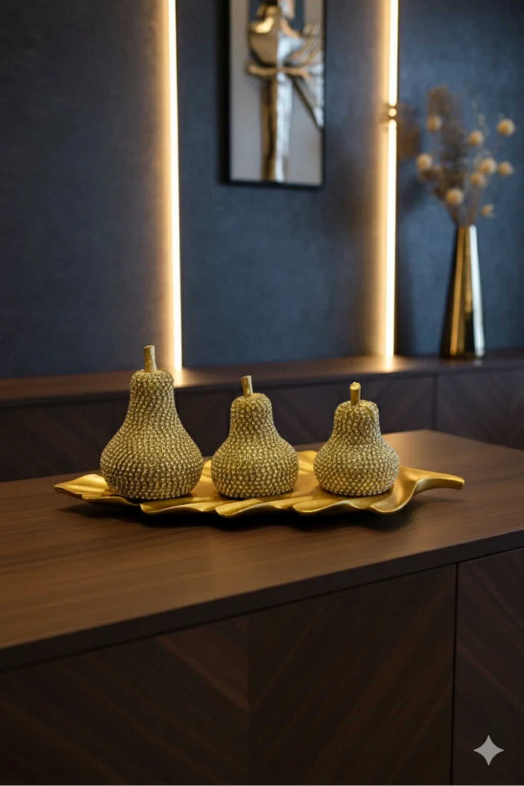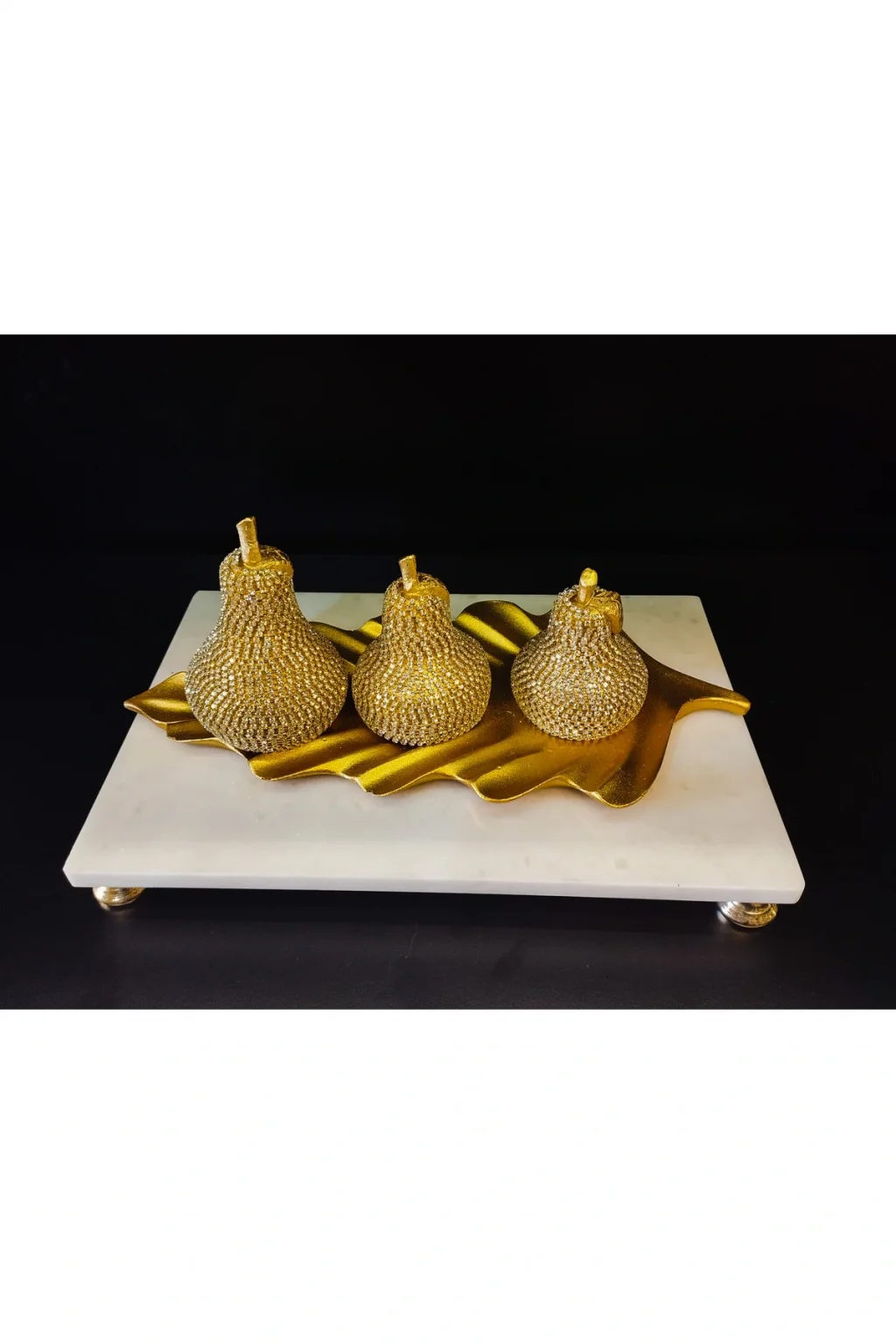 3'lü Altın Renk ve Taş Süslemeli Armut Biblo Seti Evinizin dekorasyonunu güzelleştirecek, zarif ve şık bir dokunuş arıyorsanız, 3'lü Altın Renk ve Taş Süslemeli Armut Biblo Seti tam da ihtiyacınız olan şey! Bu benzersiz ve dikkat çekici biblo seti, hem modern hem de klasik tasarımla uyumlu, göz alıcı bir dekoratif ürün sunar. ; Altın Renk: Biblo setimiz, zarafeti ve zenginliği sembolize eden altın rengi ile kaplanmıştır. ; Bu altın kaplama, ürünün dayanıklılığını artırırken görsel çekiciliği en üst düzeye çıkarır. ; Taş Süslemeler: Her armut biblo, inci beyazı taşlarla süslenmiştir. ; Bu taşlar, bibloların zarafetini ve şıklığını vurgular ve ürüne benzersiz bir dokunuş katar. ; Üç Farklı Boyut: Setimizde bulunan üç farklı boyutta armut biblo, çeşitli yerleştirme seçenekleri sunar. ; Masa üstü, kitaplık, TV ünitesi veya herhangi bir dekoratif köşe için mükemmel bir seçenek sunar. ; Malzeme: Biblolar dayanıklı ve yüksek malzemelerden üretilmiştir, böylece uzun yıllar boyunca kullanabilirsiniz. ; Hediye Seçeneği: Bu biblo seti, özel günlerde sevdiklerinize hediye olarak da mükemmel bir seçenektir. ; Eşsiz tasarımı ve şıklığı ile herkesi etkileyecektir. ; Ev dekorasyonunuza sofistike ve lüks bir dokunuş katmak istiyorsanız, 3'lü Altın Renk ve Taş Süslemeli Armut Biblo Seti sizin için ideal bir tercih olacaktır. ; Bu göz alıcı biblo seti, evinizin atmosferini anında dönüştürecek ve misafirlerinizi büyüleyecektir. ; Şimdi evinize biraz lüks ve zarafet katmanın tam zamanı! Not: Ürün seti içerisinde 3 adet armut biblo ve gold yaprak bulunmaktadır. ; BEYAZ MERMER PAKETE DAHİL DEĞİLDİR. ; Renk seçeneği olarak sadece altın rengi bulunmaktadır. ; Şimdi bu benzersiz biblo setini sipariş verin ve evinize görsel bir şıklık katmanın keyfini çıkarın!;