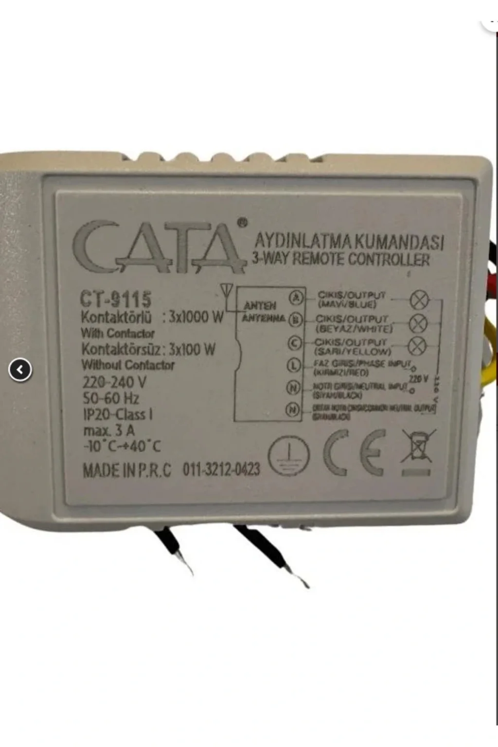 Cata CT-9115 3'lü Avize Kumandası Özellikler: Gerilim: 220-240 V; Kontaktörsüz: 3 x 100 W; Kontaktörlü: 3 x 1000 W; Çalışma Sıcaklığı: -10 °C ~ +40 °C; Koruma Sınıfı: IP20-Class I; Beyan Akımı: max. 12 mA; Açıklama: Cata CT-9115 3'lü avize kumandası, avize ve benzeri aydınlatma ekipmanlarını uzaktan kumanda ile açıp kapatmak için kullanılan bir üründür. 3 kanala sahip olan kumanda, her kanal için farklı bir aydınlatma grubunun kontrol edilmesine olanak tanır. Kumanda, 220-240 V gerilim ile çalışır. Kontaktörsüz modellerde 3 x 100 W, kontaktörlü modellerde ise 3 x 1000 W'a kadar aydınlatma gücüne sahip cihazları kontrol edebilir. -10 °C ~ +40 °C sıcaklık aralığında çalışabilir. Koruma sınıfı IP20-Class I'dir. Beyan akımı 12 mA'dır. Kumandanın kullanımı oldukça basittir. Kumanda üzerindeki butonlara basarak veya kumanda üzerindeki düğmeyi çevirerek aydınlatma gruplarını açıp kapatabilirsiniz. Ürün Avantajları: Uzaktan kumanda ile kolay kullanım; 3 kanallı kontrol imkanı; Farklı güçlere sahip aydınlatma cihazları için kullanım imkanı; Geniş çalışma sıcaklığı aralığı; IP20 koruma sınıfı; Düşük beyan akımı; Ürün Kullanım Alanları: Avize; Sarkıt lamba; Spot lamba; Led aydınlatma; Bahçe aydınlatması; Dış mekan aydınlatması; E-Ticaret Sitesi İçin Kullanım: Ürün Başlığı: Cata CT-9115 3'lü Avize Kumandası Ürün Açıklaması: Cata CT-9115 3'lü avize kumandası, avize ve benzeri aydınlatma ekipmanlarını uzaktan kumanda ile açıp kapatmak için kullanılan bir üründür. 3 kanala sahip olan kumanda, her kanal için farklı bir aydınlatma grubunun kontrol edilmesine olanak tanır. Kumanda, 220-240 V gerilim ile çalışır. Kontaktörsüz modellerde 3 x 100 W, kontaktörlü modellerde ise 3 x 1000 W'a kadar aydınlatma gücüne sahip cihazları kontrol edebilir. -10 °C ~ +40 °C sıcaklık aralığında çalışabilir. Koruma sınıfı IP20-Class I'dir. Beyan akımı 12 mA'dır. Kumandanın kullanımı oldukça basittir. Kumanda üzerindeki butonlara basarak veya kumanda üzerindeki düğmeyi çevirerek aydınlatma gruplarını açıp kapatabilirsiniz. Ürün Avantajları: Uzaktan kumanda ile kolay kullanım; 3 kanallı kontrol imkanı; Farklı güçlere sahip aydınlatma cihazları için kullanım imkanı; Geniş çalışma sıcaklığı aralığı; IP20 koruma sınıfı; Düşük beyan akımı; Ürün Kullanım Alanları: Avize; Sarkıt lamba; Spot lamba; Led aydınlatma; Bahçe aydınlatması; Dış mekan aydınlatması;