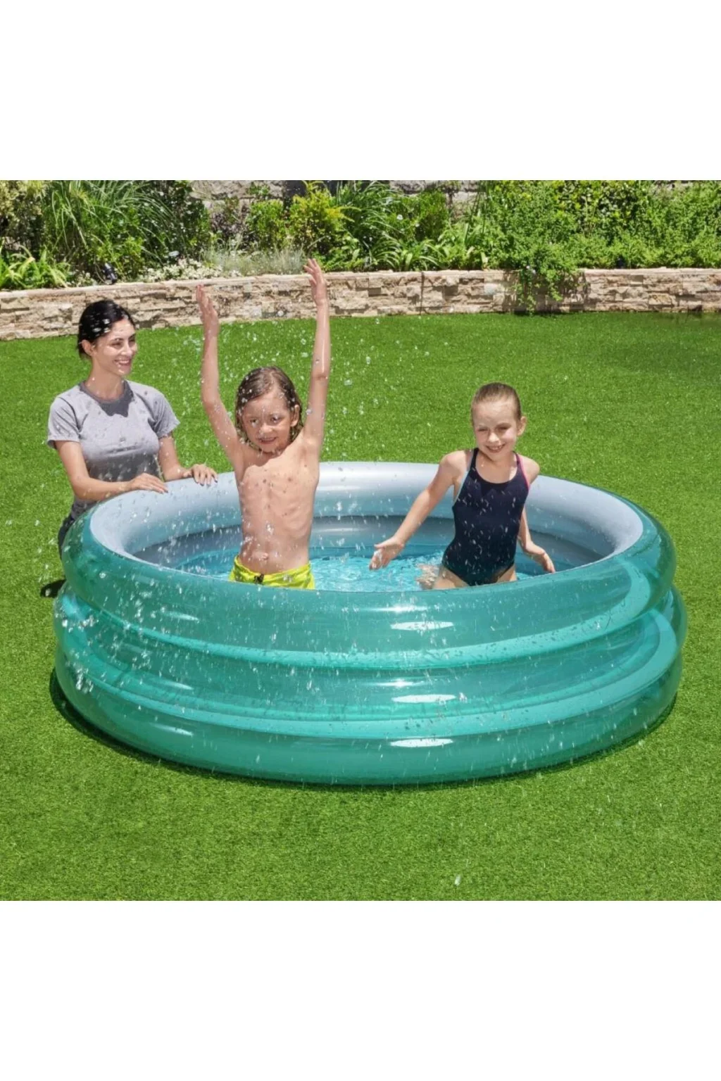 6 yaş ve üzeri çocuklar için ideal, güvenli ve eğlenceli bir oyun alanı sunar; Canlı yeşil rengi ile dikkat çeken tasarım, çocukların ilgisini çeker ve onlara keyifli vakit geçirme imkanı tanır; 170x53 cm boyutlarındaki şişme havuz, geniş yüzme alanı sağlar ve çocukların rahatça hareket etmelerine olanak tanır; Kolay kurulumu sayesinde ebeveynler için pratik bir kullanım sunar ve hızlıca şişirilip indirilebilir;