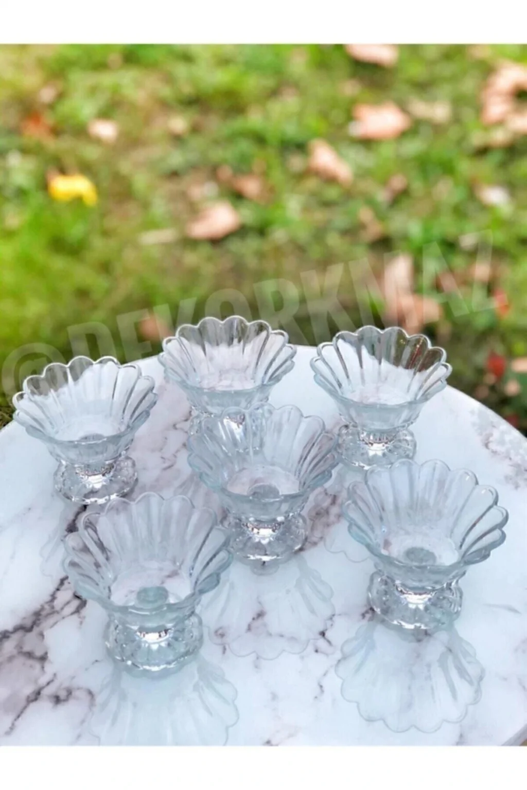 Genel Ürün 6 Adet Ayaklı Cam Şekerlik Reçellik Lokumluk Çerezlik