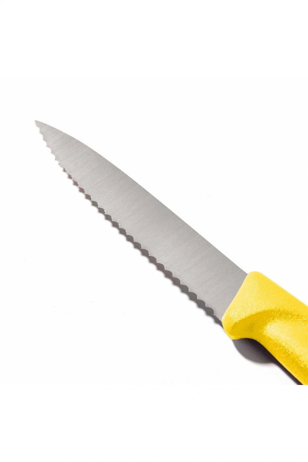 Ürün Özellikleri Malzeme/Materyal: Paslanmaz Çelik Ölçü: 8 cm Ürün Tipi: Tırtıklı Soyma Bıçakları • Not: Bu fiyat perakende satışlar için belirlenmiştir. ; Toplu alımlar Evidea tarafından incelenecek ve uygun bulunmayan siparişler iptal edilecektir. ; • Ağırlık: 25 gr • Renk: Sarı Victorinox Tırtıklı Soyma Bıçağı, sebze, meyve ve diğer yiyecekleri kolayca kesmek ve hazırlamak için mükemmeldir. ; Hassas bilenmiş tırtıklı bıçak ve lazer kontrollü kenar, keskinlik ve dayanıklılık için ideal kesme açısı sağlar. ; Kullanım ve Bakım Bilgileri • Makinede yıkanması uygundur. ; Faydalı Bilgiler & İpuçları • Paslanmaz çelik yapısıyla oldukça dayanıklıdır, böylelikle sizlere uzun ömürlü kullanım avantajı sunar. ; • Günlük kullanımlarınızda gönül rahatlığıyla tercih edebilirsiniz.;