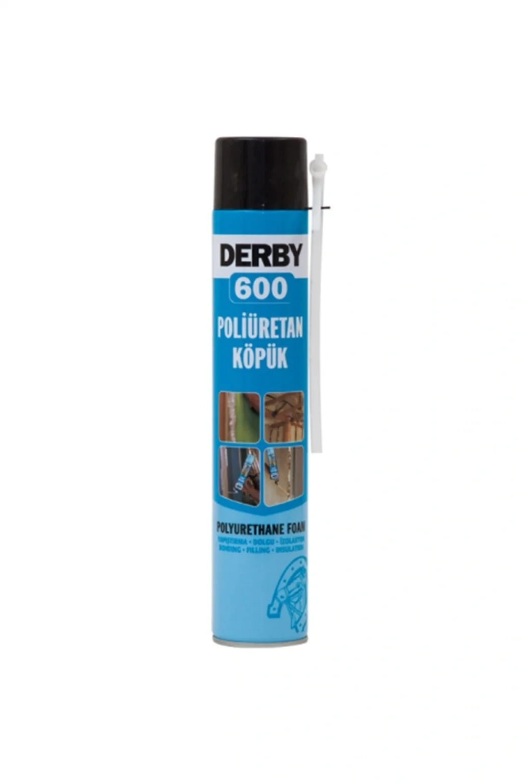 Ürün Tanımı Derby çok amaçlı poliüretan köpük, nemle genleşen ve kürleşen tek komponentli bir aerosol poliüretan köpüktür. Her bir aerosol kutuyla verilen pipet yardımıyla kullanım için tasarlanmıştır. Ozon tabakasına zarar verebilecek herhangi bir itici gaz içermez. (Brüt: 600 Gram/Net: 440 Gram) Özellikleri Küf tutmaz ve su geçirmez, boyanabilir. Kuruduktan sonra sertleşen köpük kesilebilir, zımparalanabilir, boyanabilir ve üzeri sıvanabilir. Kullanıldığı Yerler Kapı ve cam kasalarının montajı ve izolasyonunda, boşlukların, büyük çatlak ve deliklerin doldurulması ve yalıtımında, elektrik tesisatlarının ve sıcak & soğuk su borularının izolasyonunda, genel amaçlı bir dolgu, yapıştırma ve yalıtkan malzemesi olarak. Uygulama Uygulama sırasında ideal kutu ve ortam sıcaklığı +20°C’ dir. Uygulama sırasında ortam sıcaklığı +5°C ile +30°C arasında olmalıdır. Kullanımdan önce kutuyu iyice çalkalayın. Pipeti valfa yerleştirin. Kutu baş aşağı olacak şekilde valfe bastırarak köpüğü kullanın. Uygulamadan sonra köpüğün nemlendirilmesi kürleşme süresini azaltır ve yapıştırma gücünü arttırır. Raf Ömrü Uygun depolama durumunda 15 aydır. Uyarı Yeterince havalandırılmış ortamlarda kullanılmalıdır. Çalışırken eldiven kullanınız. Ateşleyici maddelerden uzak tutulmalıdır. Tüp basınç altındadır; direkt güneş ışığına ve 50°C’ nin üstünde sıcaklığa maruz bırakılmamalıdır. Çocuklardan mutlaka uzak tutulmalıdır. Düşük sıcaklıklarda uygulama, köpüğün verimi ve kürleşme süresini azaltır. +30°C’ nin üstünde ve -5°C’nin altında depolanması durumunda raf ömrü kısalabilir. Depolama ve taşıma sırasında kutu dik durumda tutulmalıdır.