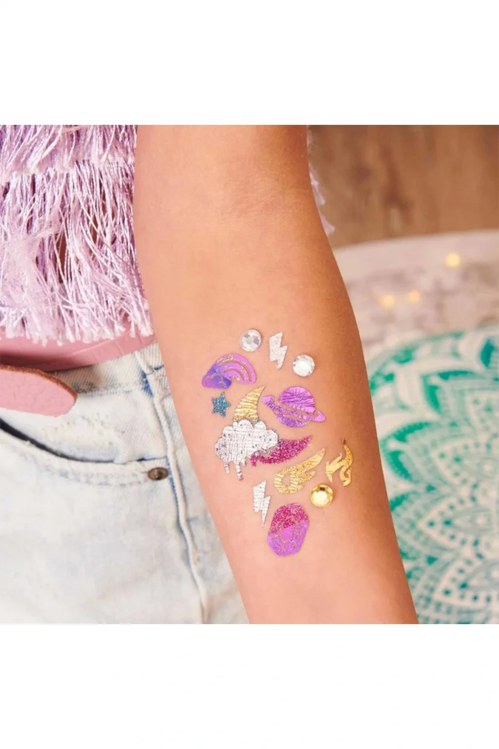 Cool Maker Shimmer Me Vücut Sanatı ile tarzınızı yansıtın ve göz alıcı parıltılı dövmeleri kendiniz tasarlayın! Kız çocukları için tasarlanmış olan bu hepsi bir arada geçici dövme seti, vücut sanatını kendinize göre kişiselleştirebilmeniz için ihtiyacınız olan her şeyi içerir: dört metalik folyo kartuş, iki renk parıltılı sim ve fırça, değerli taşlar, bir dövme aleti ve 180 tane çift taraflı dövme tasarımı! Birçok modaya uygun ve sevimli tasarım içeren bu set ile vücut sanatını kendi tarzınıza göre oluşturup şekillendirebilirsiniz! Cool Maker Shimmer Me Seti ile ışıltılı tırnaklara sahip olmak çok kolay. Tasarımınızı uygulamak istediğiniz alanı temizleyin, ardından folyolardan birini dövme aletine yerleştirin. Özel tasarım dövmenizi oluşturmak için çıkartmalardan istediklerinizi seçin! Her bir çıkartmayı teninize bastırın ve bekletin; şeffaf üst katmanı soyun, folyonun yapışması için yapışkan bir yüzey bırakın. Ardından, özel dövme tasarımınızı ortaya çıkaracak şekilde dövme aletinin silindirini çıkartmalarınızın üzerinde yavaşça gezdirin! Dövmelerinizi mücevherlerle süsleyin, yeni bir dövme tasarımı seçin ve daha ışıltılı görünümler yaratın! Hatta doğrudan çıkartmaların üzerine parıltı uygulamak için fırçayı kullanabilir veya benzersiz bir görünüm elde etmek için folyo ve parıltıyı birleştirerek vücut sanatınızı bir adım ileriye taşıyabilirsiniz! Her Shimmer Me Vücut Sanatı kartuşu 107 cm'lik folyo içerir, böylece tekrar tekrar yeni dövmeler tasarlayabilir, dövme aleti ile vücudunuza işleyebilirsiniz. Çocuklar için Shimmer Me Vücut Sanatı geçici dövmeleri yaklaşık 24 saat boyunca kalıcıdır. Dövmeler cilde zarar vermez ve dövme yapışkan ılık su ve bir bezle kolayca çıkarılabilir. Bu eğlenceli parıltılı dövme seti kız çocukları için harika bir hediyedir ve pijama partileri, spa günleri, doğum günleri gibi günlerde yapabileceğiniz en iyi aktivitedir. Tarzınızı kişiselleştirmenin daha fazla yolu için Shimmer Me Vücut Sanatı Dolum Paketini satın alın ve GO GLAM U-nique Manikür Evi (her biri ayrı satılır) ile el ve ayak tırnaklarınızı kişiselleştirin ! Cool Maker Shimmer Me Vücut Sanatı Seti ile muhteşem parıltılı dövmelere kavuşun!