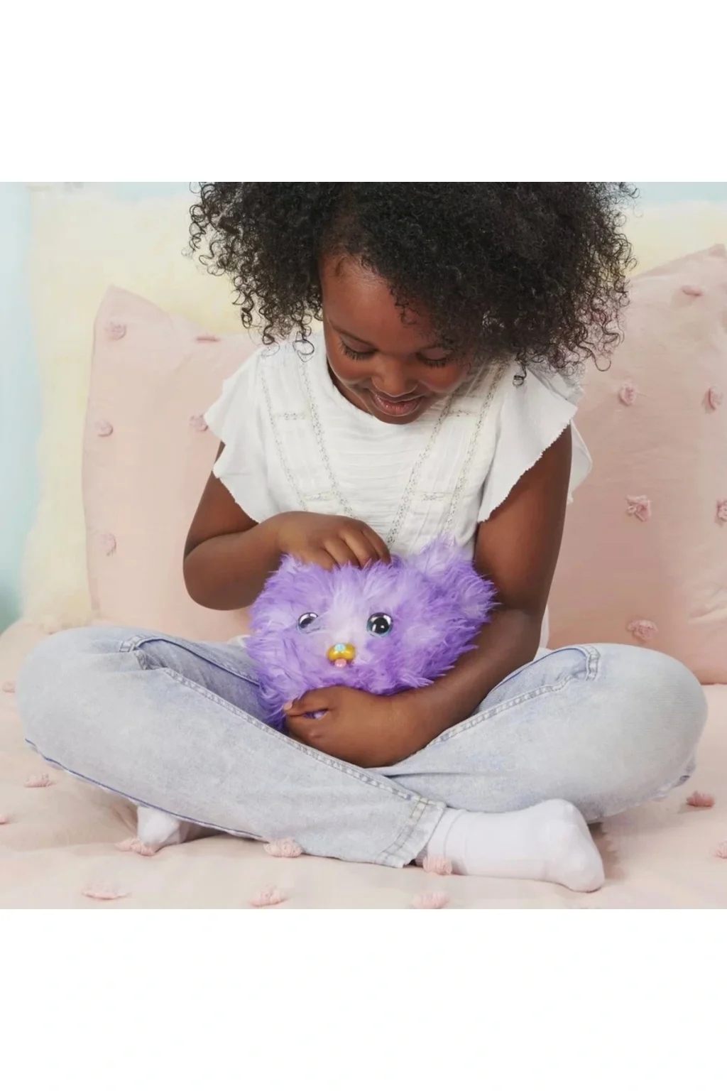 Fur Fluffs ile tanışın: tüylü evlerini arayan tüylü etkileşimli evcil hayvanlar! Çocuklara yönelik bu süper sevimli oyuncaklar, 100'ün üzerinde heyecan verici ses ve tepkiye sahiptir ve sürpriz bir evcil hayvanı ortaya çıkarır! Yumuşak mor bir tüyün içine gizlenmiş Pupper-Fluff.; Onu saklanmaya teşvik etmek ve güvenini kazanmak için utangaç ve çekingen Fur Fluffs oyuncağınla oyna.; Onu evcilleştirebilir, yuvarlayabilir, sallayabilir, fırlatabilir ve baş aşağı çevirebilirsiniz - tüyleriniz daha rahat hissettiğinde kulaklarını ortaya çıkarır! Oynamaya devam edin, gözleri de dışarı bakacak! Pupper-Fluff size tamamen güvendiğinde, kutlama şarkısını duyacaksınız ve o tüyden evcil hayvana dönüşecek! Oynadıkça Pupper-Fluff'ın tatlı ve aptal kişiliğinin kilidini açacaksınız.; Bu kadar çok ses efekti ve tepkiyle, ne kadar güzel tepkiler alacağınızı asla bilemezsiniz! Bu küçük tüy yemek yemeyi,li yuvarlanmayı, sarılmayı, dans etmeyi, şarkı söylemeyi ve daha fazlasını sever.; Hem tüy hem de evcil hayvan modunda oynamanın pek çok yolu var! Evcilleştirildiğinde mırıldanır ve havlar, gıdıklandığında kıkırdar ve kıpırdar ve sarsıldığında başı döner.; Takla attığını görmek için yeni arkadaşını havaya fırlat ya da baş aşağı çevir! Tüy modunda, onu besleyin ve hıçkırıkları korkutup uzaklaştırın, oyun oynayın ve daha fazlasını yapın.; Kürk Kabarıklarınla bir dans partisi bile yapabilirsin! Müzik çalmak için evcil hayvanınızı sola ve sağa eğin ve şarkısını duymak için Pupper-Fluff'ın kafasına dokunun.; Sevimli bir yüksek nota gibi daha fazla müzik sesi için evcil hayvanınızı sallayın, fırlatın ve eğin! İstediğiniz zaman Fur Fluffs evcil hayvanınızı tekrar tüye dönüştürün veya tüyden evcil hayvana tekrar tekrar geçin.; Daha fazla kabarık eğlence için Fur Fluffs Purr 'n Fluff (ayrı satılır) arayın! Fur Fluffs oyuncakları, hayali oyun oynamak ve her durum için harika doğum günü hediyeleri, Noel hediyeleri veya 5 yaş ve üzeri çocuklar için hediyeler yapmak için mükemmeldir.; Her Fur Fluffs yaklaşık 7 inç çapındadır.; 3 adet AA pil içerir.; Fur Fluffs ile en tatlı sürprizi keşfedin!