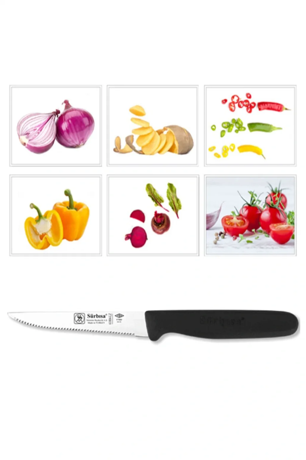 - Tek parça halinde gelen bu bıçak, mutfakta ihtiyacınız olan pratikliği ve kolaylığı sunar; - Paslanmaz çelik materyali sayesinde uzun ömürlü kullanım ve dayanıklılık sağlar; - Meyve bıçağı olarak tasarlanmış olup, sebzelerinizi kolayca dilimlemenize olanak tanır;