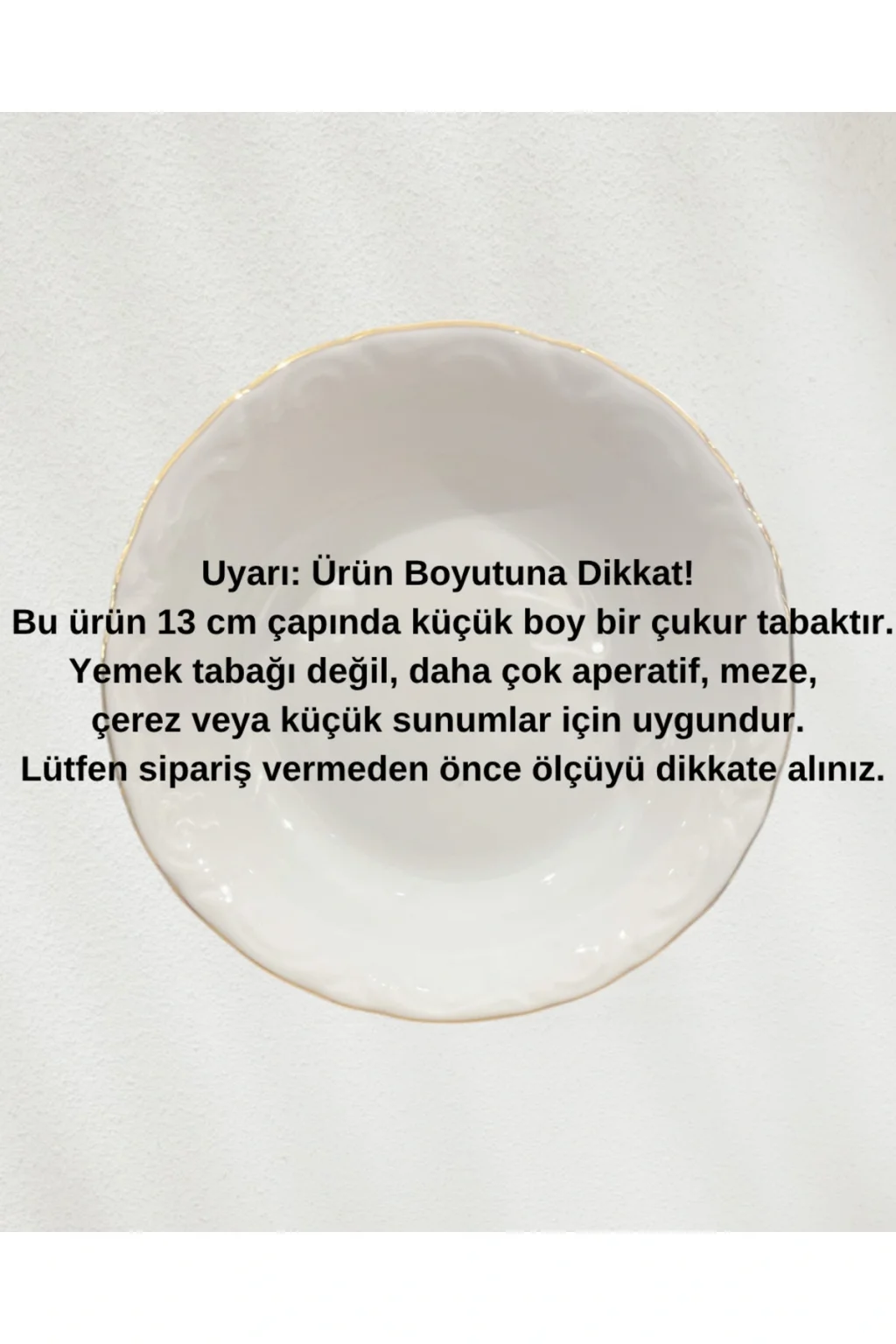 6'lı Altın Yaldızlı 13 Cm Porselen Çukur Tabak Küçük Boy Çerezlik Kahvaltılık Porselen Tabak