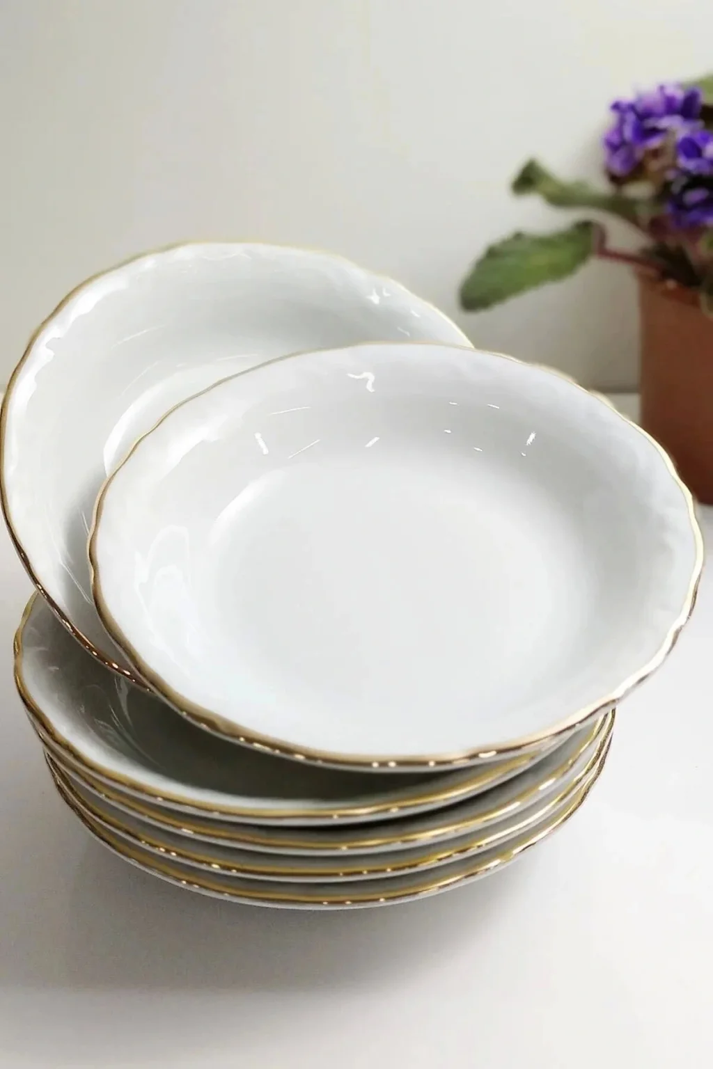 Genel Ürün Porselen 6'lı Altın Yaldızlı 16 Cm Çukur Tabak