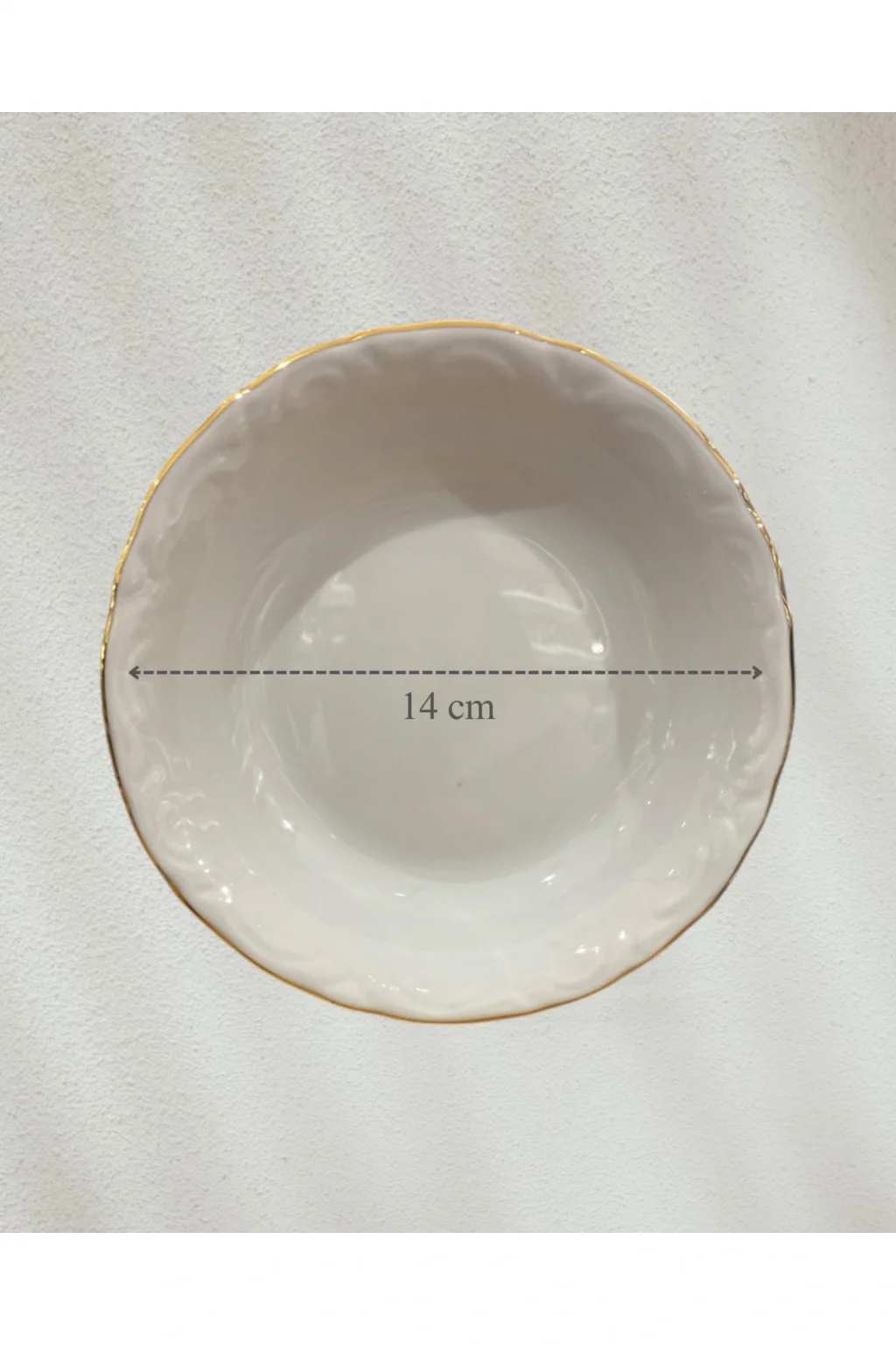 Genel Ürün 6'lı Altın Yaldızlı 14 Cm Porselen Çukur Tabak Küçük Boy Çerezlik Kahvaltılık Porselen Tabak