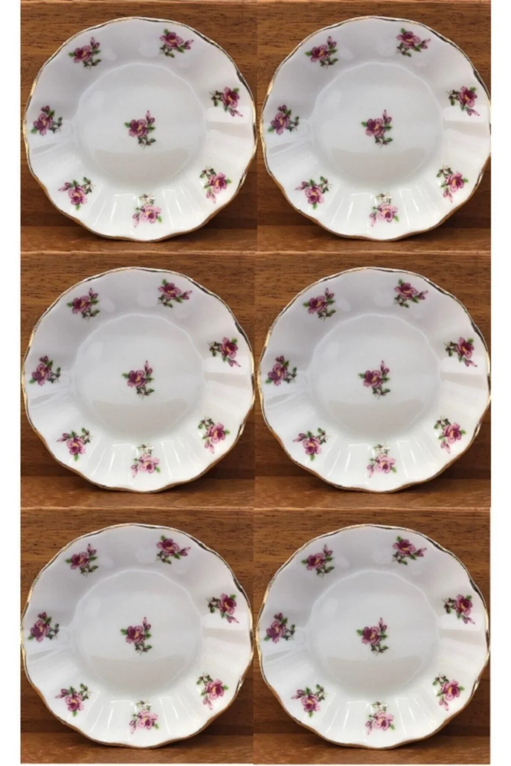 Porselen malzemesi sayesinde uzun ömürlü ve dayanıklı kullanım sunar; Zarif pembe çiçek desenleriyle estetik bir görünüm kazandırır, sofralarınıza şıklık katar; 6'lı set halinde sunulan bu çay tabakları, misafirlerinize servis yaparken dekoratif bir dokunuş sağlar; Çay servisi için ideal boyutlarda tasarlanmıştır, rahatlıkla kullanabilirsiniz;