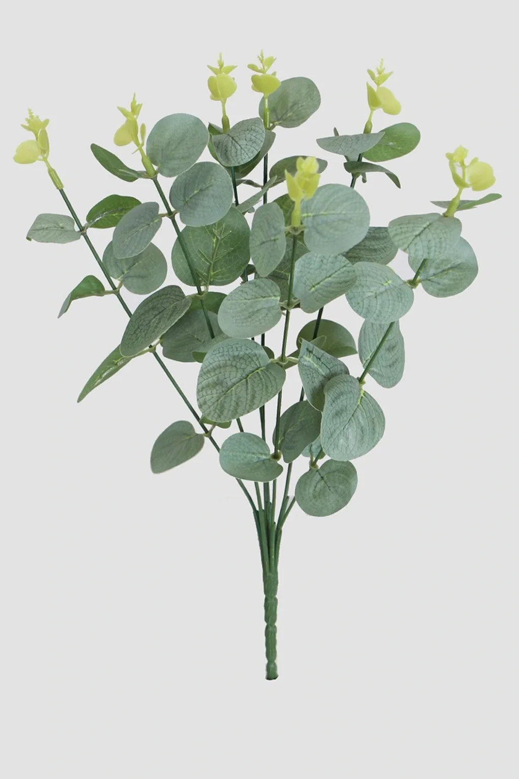 33 cm uzunluğundaki bu okaliptus demeti, doğal görünümüyle mekanınıza tazelik ve canlılık katar; Mat yeşil rengiyle dikkat çeken yapay çiçekler, gerçekçi dokusuyla dekorasyonunuzu tamamlar; Yapay ve kuru çiçek kategorisinde yer alan bu ürün, uzun ömürlü kullanım sunar ve bakımı kolaydır; Demet formundaki tasarımı sayesinde, çeşitli dekorasyon stilleriyle uyum sağlar ve estetik bir görünüm oluşturur;