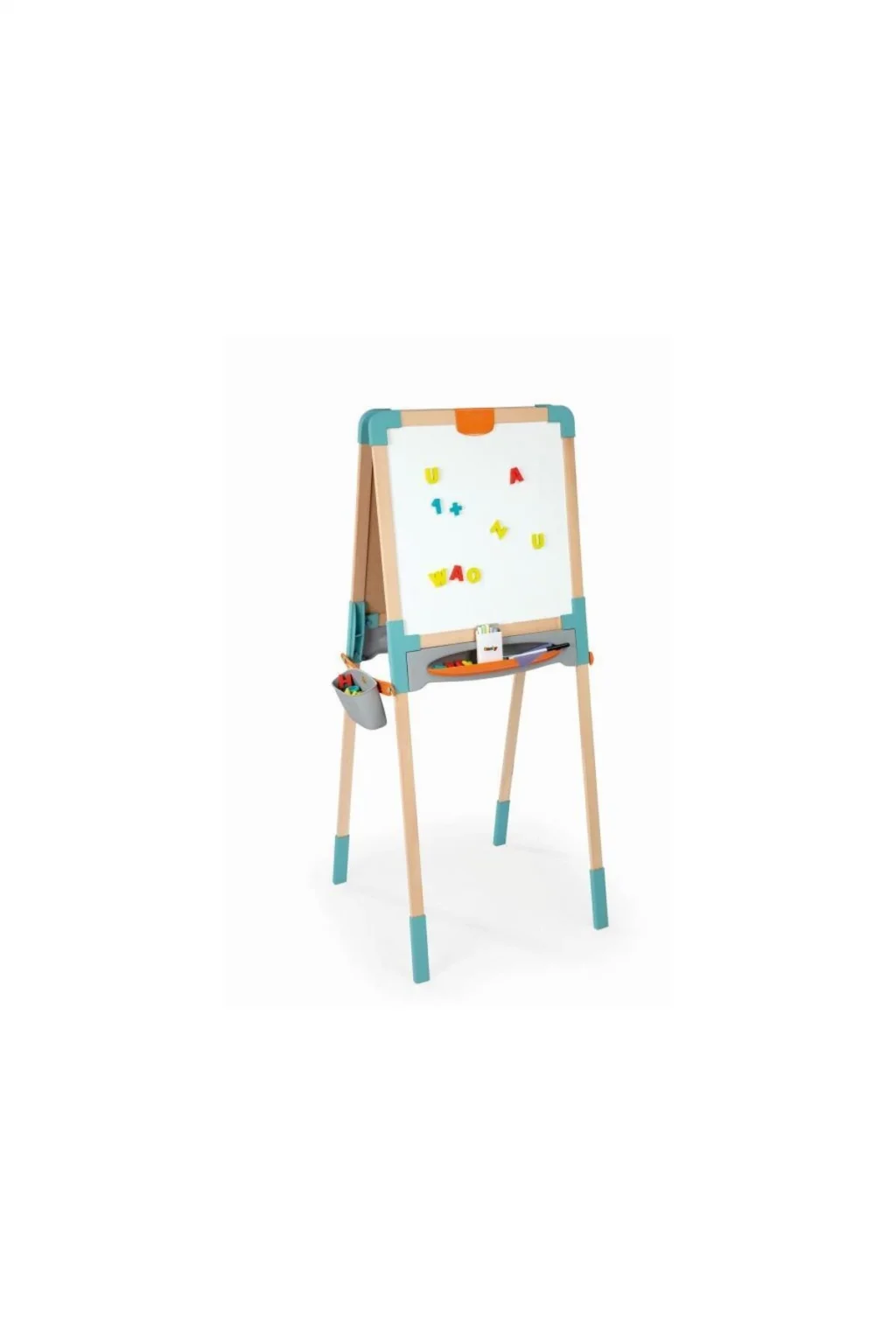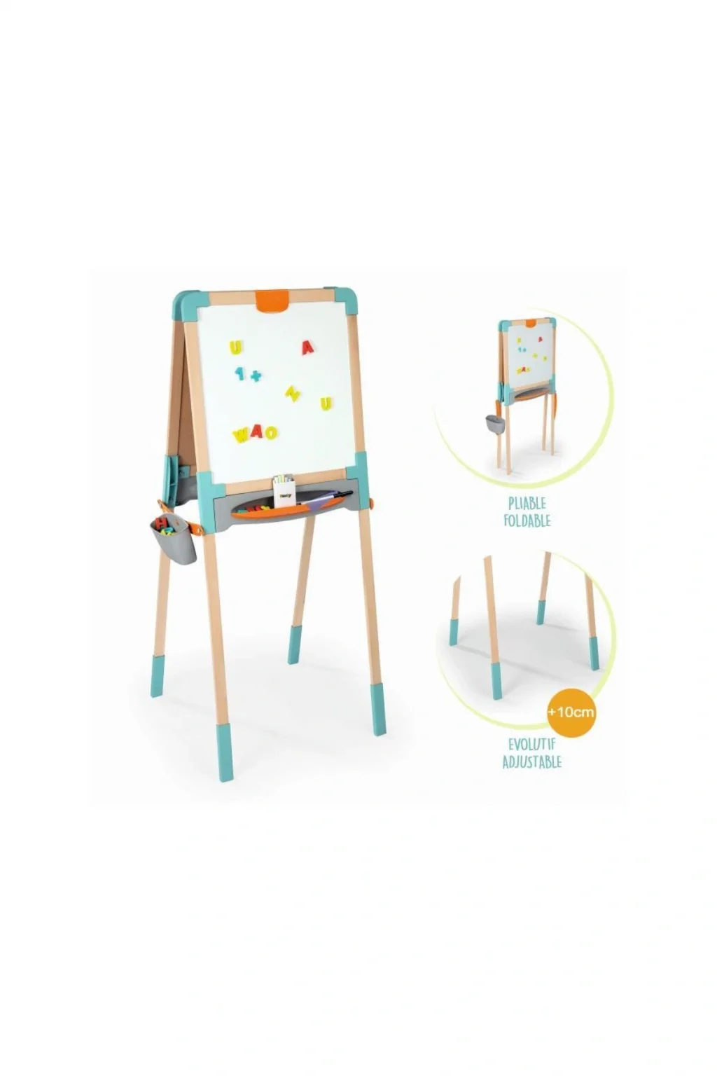 Smoby Ahşap Yazı Tahtası Çift Taraflı (Manyetik ve Tebeşirli) 410400 Smoby Çift taraflı yazı tahatası ile, eğlenerek ve oyunlarla öğrenme vakti! Sağlam ahşap ve yüksek kaliteli malzemeden üretilmiş çift taraflı yazı ve yaratıcı tahta.; Manyetik plastik tarafta, çocuklar hayal güçlerinin çılgına dönmesine izin verebilir: Keçeli kalemler ve 72 manyetik harf ve sayı ile çeşitli öğrenme ve oyunlar oynanabilir.; Tahtanın siyah tarafı, tebeşirle yazma ve aritmetik alıştırmalar için bolca alan sunar.; Ahşap panoda kalemler için iki raf ve ayrıca manyetik harf ve sayıların saklanabileceği yanına kolayca takılabilen plastik bir saklama kutusu vardır.; Ayrıca panonun her iki yanında birer ataç bulunmaktadır.; Aksesuarlar toplam 80 parçadan oluşmaktadır: 6 farklı renkten oluşan tebeşir seti, sünger, yazısı silinebilir kalem ve 72 adet manyetik harf ve rakamdan oluşmaktadır.; Fransa'da yüksek kaliteli malzemeden üretilmiştir.; Ürün boyutları (UxGxY): 50 x 55 x 120 cm.; Yaş önerisi: 3 yaşından büyük çocuklar için uygundur.