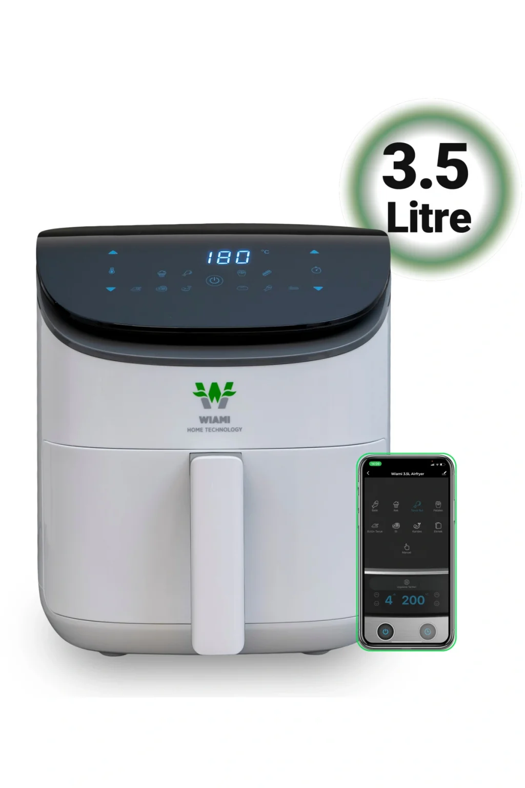 Yağsız fritöz olarak kullanılabilen cihaz 1500W motor gücü ile çalışır.; Yüksek motor gücü sayesinde kaliteli kullanım imkanı sunar.; Hava fritözü geniş kapasitesi ile konforlu kullanım yaşatır.; 3.5 litre hazne kapasitesine sahiptir.; Wiami airfryer 3.5 L akıllı yağsız hava fritözü zamanlayıcı özelliği sayesinde istenen zaman dilimi içerisinde pişirme işleminin yapılmasını sağlar.; Bu özellik ile yemeklerin en iyi şekilde pişirilmesine yardımcı olur.; Wiami airfryer 3.5 litre modeli 1 adet hazne ile kullanılır.; Üzerinde bulunan ısı ayarı ile ısı ayarlamasının yapılabilmesi mümkündür.; Fritöz beyaz renk tonu ile şık bir tasarıma sahip olup dayanıklı materyallerden üretilmiştir.; Cihazın gövde malzemesi plastik materyalden yapılmıştır.; Wiami airfryer 3.5 lt yağsız fritöz 3.88 kg ağırlığa sahip olduğu için birçok alana taşınabilir.; Bulaşık makinesinde yıkanma özelliği ile kolaylıkla temizlenebilir.; Cihazın dokunmatik LED ekranı mevcuttur.; 10 farklı pişirme programı ile istenen yemeklerin farklı programlar ile hazırlanmasına yardımcı olur.; Uygulama bağlantısı ile kontrol edilme özelliğine sahiptir.; 4 farklı fonksiyon ile farklı pişirme işlemlerini gerçekleştirir.; Az yağda kızartma, kızartma yapma, pişirme işlemi ve yağsız kızartma fonksiyonları bulunur.; Haznesi çıkarılabilir özellikle olduğu için kolaylıkla temizlenebilir.; Sıcak hava yöntemi ile pişirme işlemlerini gerçekleştirir.;