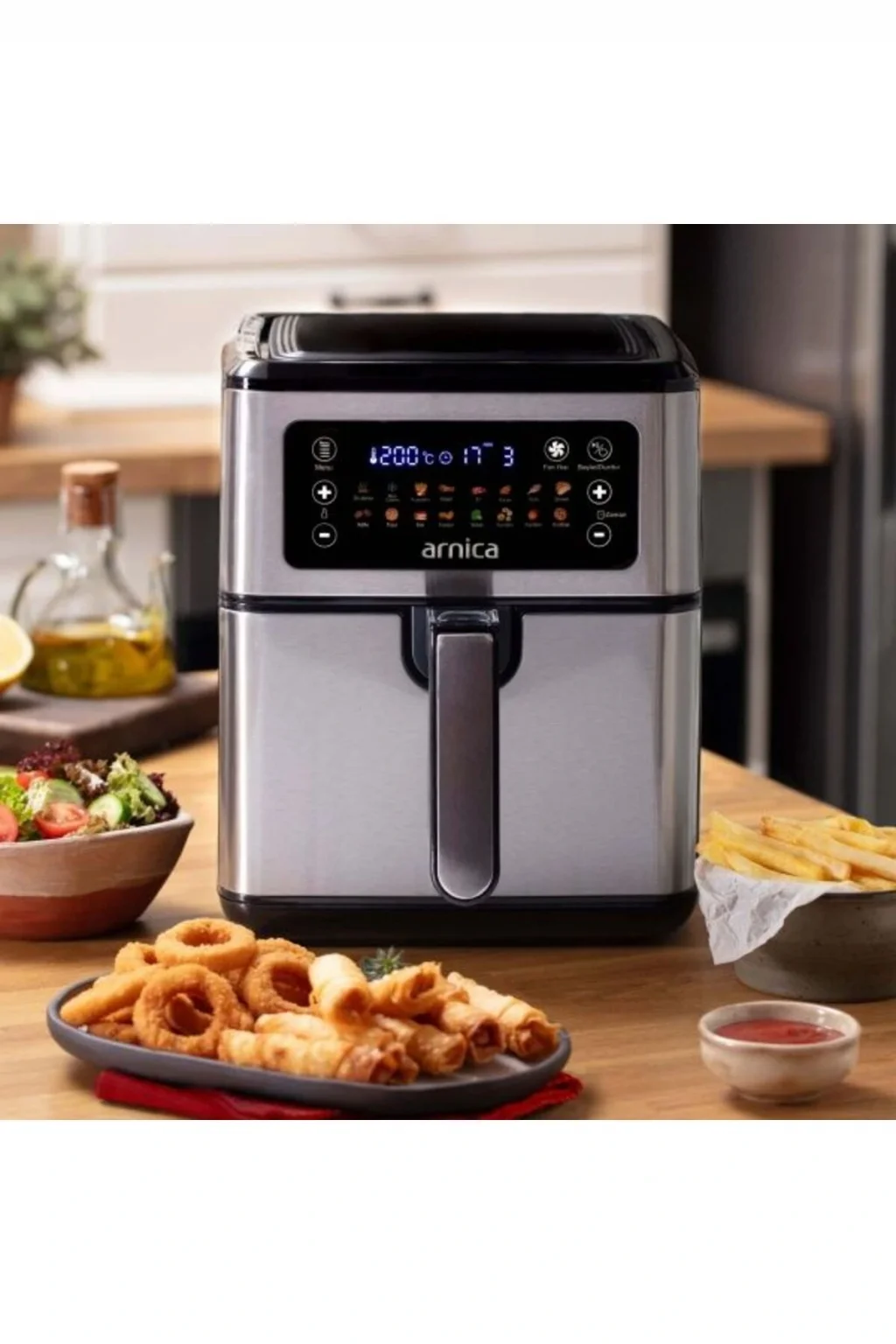 Modern tasarımı ve şık görünümüyle mutfak dekorasyonunuza estetik bir dokunuş ekler;; Hava teknolojisi sayesinde yağsız ve sağlıklı pişirme imkanı sunar, böylece beslenme alışkanlıklarınızda sağlıklı seçimler yapabilirsiniz;; Zamanlayıcı özelliği ile pişirme süresini kolayca ayarlayabilir, yemeklerinizi tam istediğiniz an pişirme işlemini durdurabilirsiniz;; Sıcaklık kontrolü sayesinde farklı yiyecek türleri için ideal pişirme sıcaklığını kolayca ayarlayabilirsiniz;;