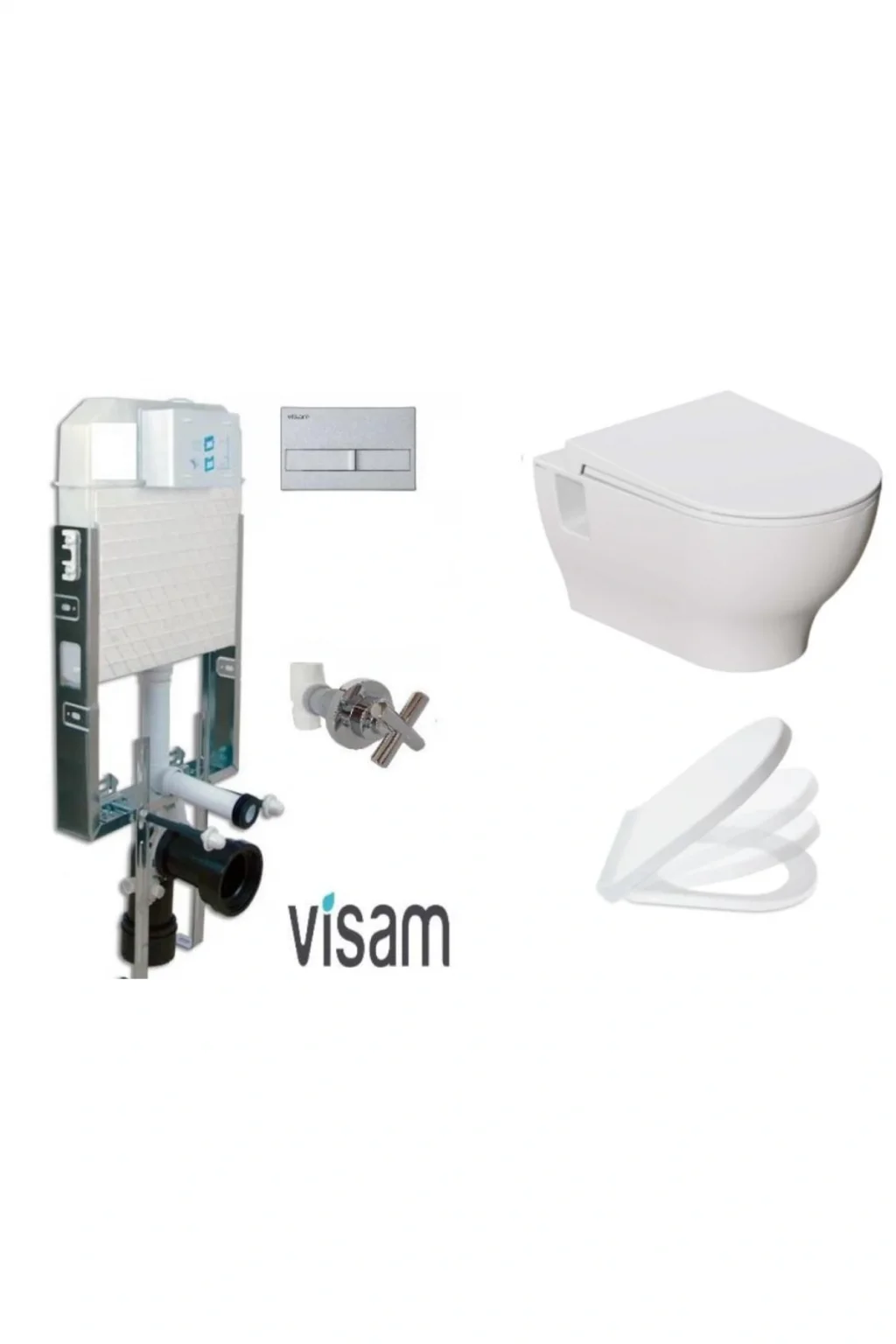 Visam; Alvit Astra; Gömme Rezervuar Asma Klozet Seti 5 Parça Tam Set Visam Gömme Rezervuar Gövde Visam Basma Buton Karina Ara Kesme Valfi Alvit Astra Asma Klozet Nkp Smart Yavaş Klozet Kapağı TAM TAKIM 5 PARÇA SET;
