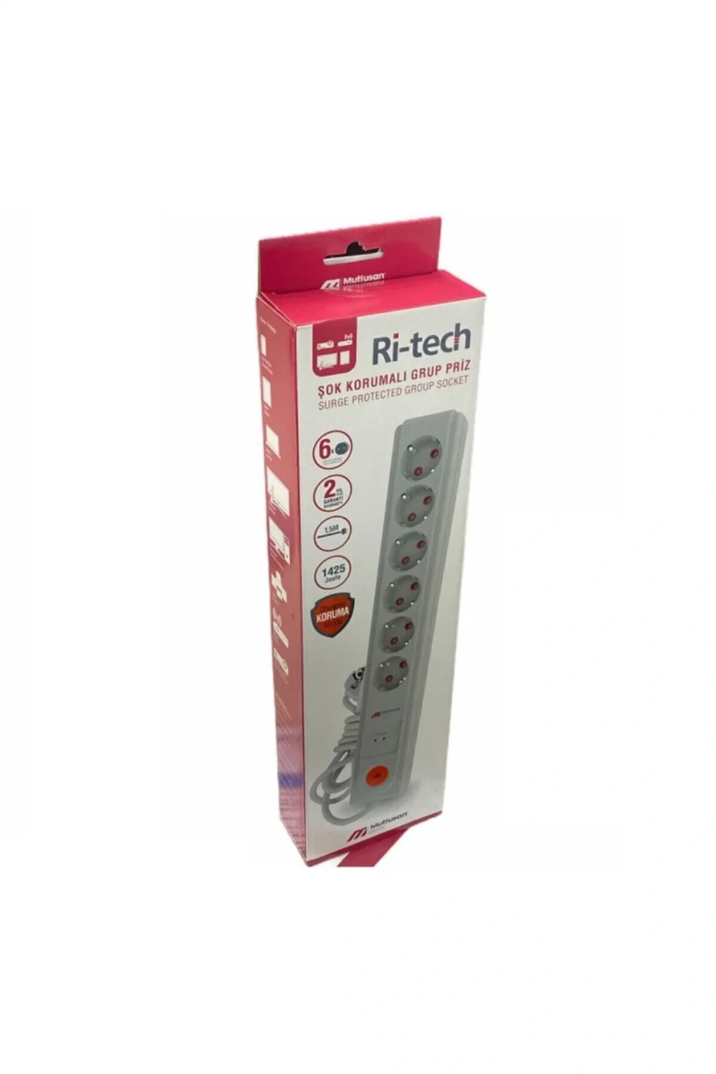 Ri-Tech 6'lı Akım Şok Korumalı,Çocuk Korumalı Topraklı Grup Priz 1.5 Metre