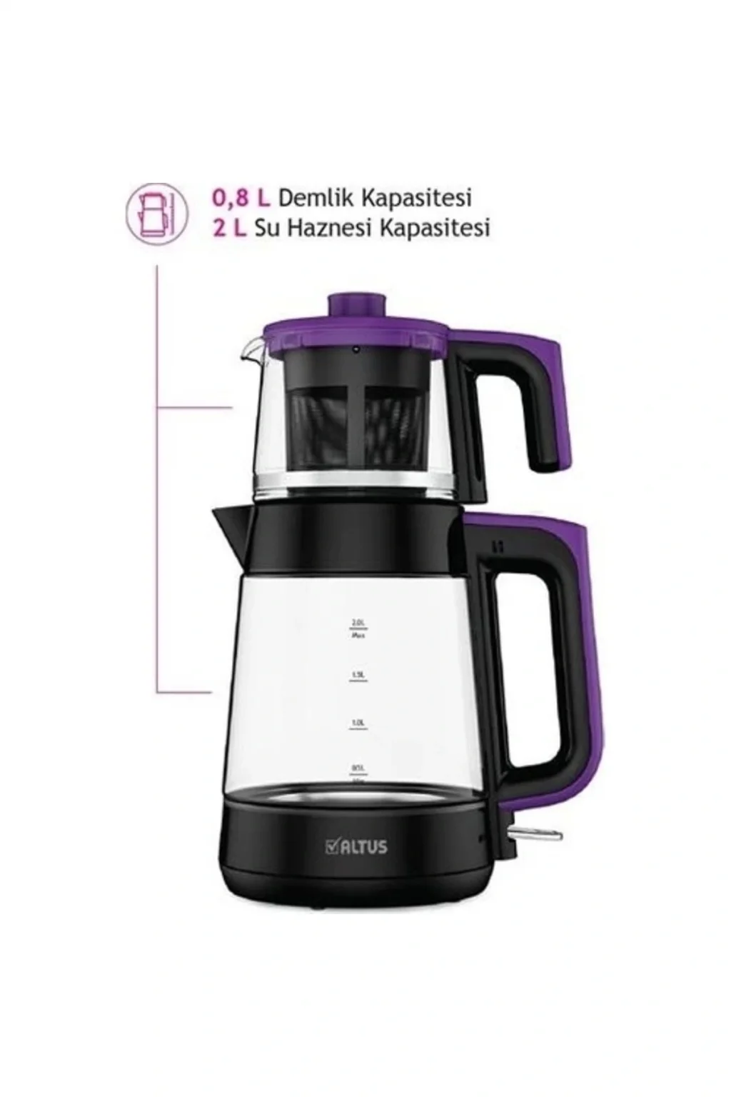 Genel Ürün 1900 W 2000 ml Cam Çaycı Mor