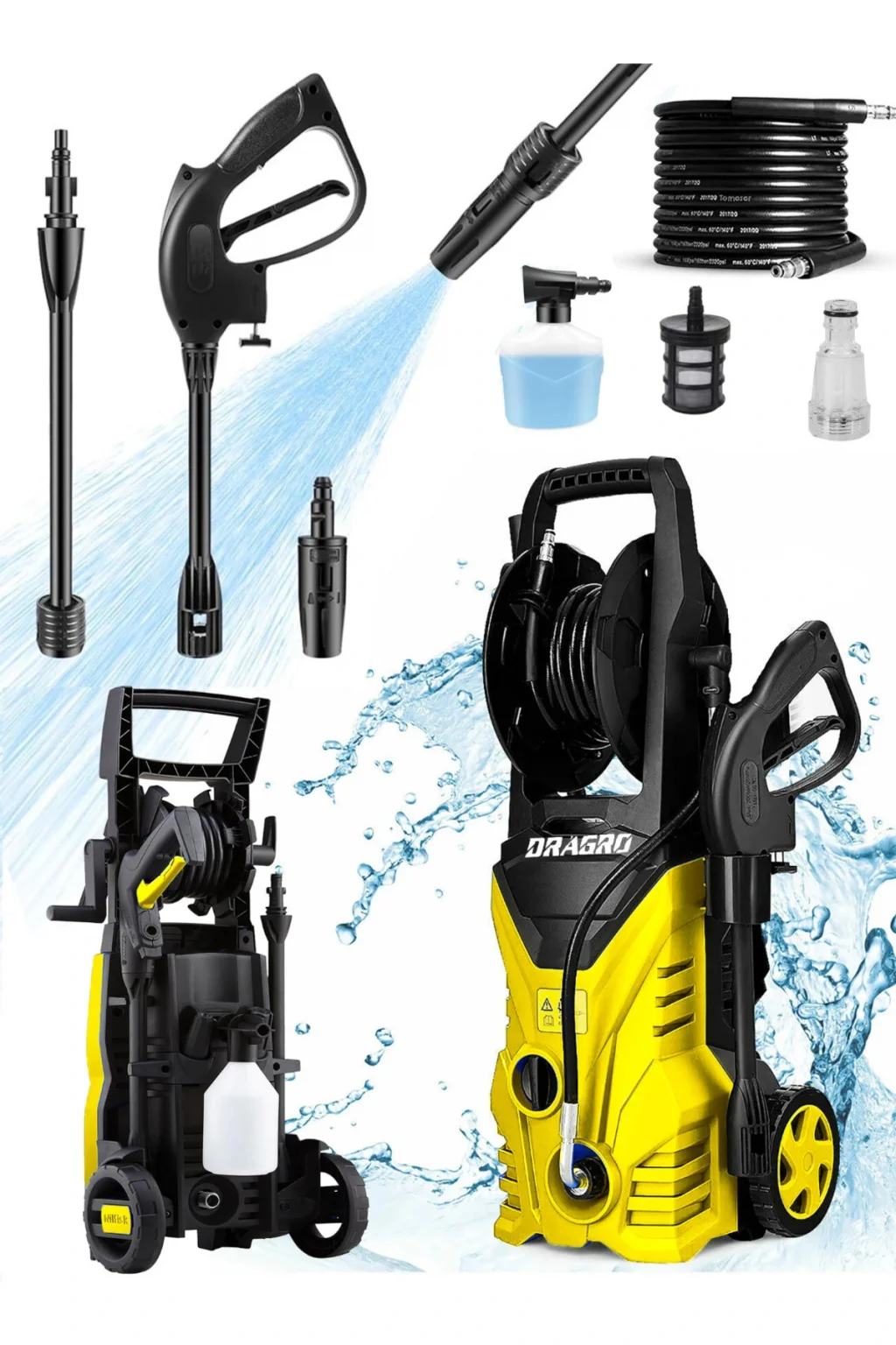 DRAGRO Alman Pro Yüksek Basınçlı 180 Bar Musluk Ve Kovadan Su Çekme Bahçe Oto Yıkama Makinesi TURUNCU 1 ADET BASINÇLI YIKAMA MAKİNESİ 1 ADET NOZZLE 1 ADET TABANCA 1 ADET HORTUM FİLTRE APARATI 1 ADET KOLAY BAĞLANTI ADAPTÖRÜ 1 ADET ŞAMPUAN HAZNESİ 1 ADET MAKİNE ÜZERİ MAKARAYA ENTEGRE 7 METRE TABANCA HORTUMU 1 ADET 1 METRE YEDEK HORTUM Arabanızı her zaman oto yıkamaya götürmekten bıktınız mı? O zaman, yollarda tatlı sürüşünüzü sergilemenize engel olan tüm kir, toz, kir ve diğer lekelerden kurtulmak için DRAGRO Yüksek basınçlı yıkama tam ihtiyacınız olan makine. ; Yıkama makineleri çalışırken size yardımcı olmak için aracın içini ve dış temizliği için önemlidir. ; Tek yapmanız gereken, etkinliğiniz için doğru yıkama makinesini bulmak ve hazırsınız! DRAGRO Yüksek basınçlı Ev ve Araba Yıkayıcımız, hızlı ve verimli bir temizlik işi yapmanıza yardımcı olur. ; 180 Bar yüksek basınca sahip 2500 W üniversal motora sahiptir. ; Sağlam tekerlekler ve kolay katlanır tutamak, onu taşınabilir bir cihaz haline getirir. ; Güneşlik, çatı ve tavan köşeleri gibi ulaşılması zor alanlardaki toz ve kiri temizlemek sıkıcı bir temizlik işidir. ; DRAGRO Yüksek basınçlı yıkama makinemiz işinizi kolaylaştırır. ; Bu tür ağır kir temizleme işlemleri için ayarlanabilir nozullu püskürtme tabancası tayzik ayarını yapmanıza olanak sağlar. ; Geniş Uygulama Alanları Bu elektrikli basınçlı yıkayıcı, temizlik işinizi daha rahat ve kısıtlamalardan arındırabilir. ; Dış cephe kaplaması, araba yolları, güverteler, çimento, kaldırım, havuzlar, dış mekan mobilyaları, arabalar, kamyonlar, karavanlar, çöp kutuları, hayvan kafesleri, teraslar, çim ekipmanları ve daha fazlası için mükemmeldir. ; Kir, Kir, Çöp, Yağ, Pas vb.;