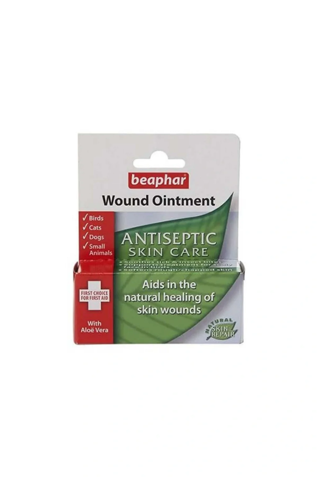 Beaphar Aloe Verali Antiseptik Deri Merhemi 30mlBeaphar Aloe Verali Antiseptik Deri MerhemiÜrün Kodu: 210-011978 Beaphar Aloe Verali Antiseptik Deri Merhemi, Köpekler, kediler ve kuşlar için yüzeysel deri yaralarının iyileşmesine yardımc antiseptik yara merhemidir.; Kurumuş ve çatlamış ciltlerin daha sağlıklı ve canlı olmasını sağlar.; Kuşların yüzlerinde ve bacaklarında oluşan pullariçin tedavi edici özelliğe sahiptir.; Yatıştırıcı etkisi bulunan calendula ve aleo vera bitkisi ile formule edilmiştir, kaşıntının giderilmesine yardımcı olur.; Beaphar Antiseptik Deri Merhemi, Özellikle böcek ısırığı, yara ve tahriş olmuş deriyi onarır, kaşıntıyı giderir ve rahatlatır.; İçeriğinde bulunan Aloe Vera nemlendirici özelliğe sahiptir,kuru ciltlerin rahatlamasına da yardımcı olur.; Ürünün Kullanım Şekli;* Yaralar ve böcek ısırıkları için; evcil hayvanınızın o bölgede ki tüylerini kestikten sonra ılık suyla yara veya tahriş olmuş bölgeyi veçevresini yıkayaraktemizleyiniz, ellerinizi temizledikten sonra günde 2 - 4 kere cilt düzelene kadar merhemi uygulayınız.; * Kuşların pullu yüz ve bacaklarıiçin; uygulamadan önce cilt yüzeyinin temiz olduğundan emin olunuz.; 6 gün boyunca günde 1 defa problemli bölgeye merhemi uygulayınız.; Uyarılar;* Çocukların ulaşamayacağı bir yerde ağzı kapalı olarak muhafaza edilmelidir.; * Oda sıcaklığında saklanması tavsiye edilmektedir.; * Sadece hayvanlar içindir.; * Ürünü kullandıktan sonra ellerinizi yıkayınız.