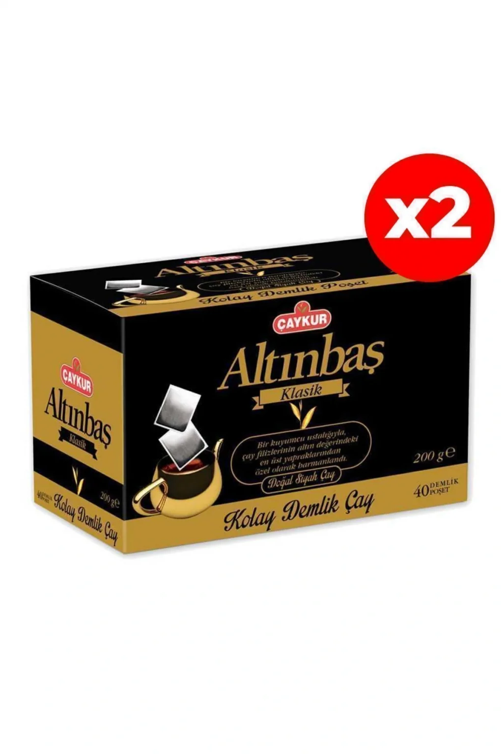 - Yüksek kaliteli çay yapraklarından üretilmiş, 200 gramlık paketler halinde sunulan Altınbaş Demlik Poşet Çay, her bir fincanında zengin ve aromatik bir lezzet sunar.; - İki adet paket içeren bu ürün, hem bireysel kullanım için idealdir hem de misafirlerinize şık bir sunum imkanı sağlar.; - Altınbaş Demlik Poşet Çay, demlik poşet formu sayesinde pratik kullanım sunar; su ile temas ettiğinde çay yapraklarının aroması açığa çıkarak mükemmel bir demleme deneyimi yaşatır.; - Altınbaş Demlik Poşet Çay, geleneksel demleme yöntemlerine uygun olarak hazırlanmış olup, her fincanında özgün bir tat ve aroma sergiler.; - Altınbaş Demlik Poşet Çay ile çay ritüelinizi keyifli bir deneyime dönüştürün; her yudumda damak tadınıza hitap eden lezzetli bir fincan çay keyfi yaşayın.