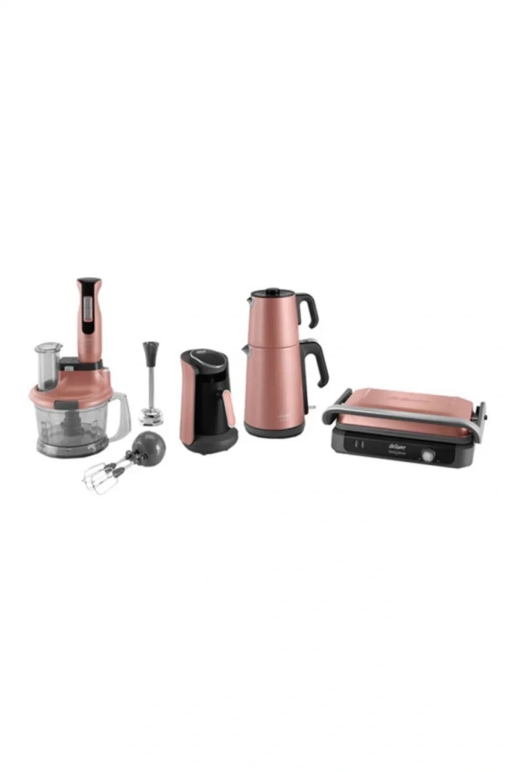 Arzum AR9023PRO Gün Batımı Çeyiz Paketi Arzum AR9023 Pro Natura 4'lü Elektrikli Çeyiz Seti Doğadan İlham Alan Güzellik Gün batımından ilham alan benzersiz tasarımı ile mutfağınıza güzellikler katarak sizlere çok daha keyifli bir mutfak deneyimi yaşatmayı amaçlayan Arzum çeyiz seti, tüm ihtiyaçlarınızı bir arada topladığı ergonomik tasarımları ile yemek pişirme sürecindeki en büyük yardımcınız olarak sizlere destek sağlıyor. ; Bol Köpüklü Kahve Sohbetleri Sevdiklerinizle bir arada geçirdiğiniz dakikaların keyfini ikiye katlayacak en lezzetli şey, hiç şüphesiz ki 40 yıllık hatrı olan türk kahvesidir. ; 4 kişilik kahve kapasitesi ile bol köpüklü kahveler yapabilmenizi sağlayan Minio kahve makinesi, közde kahve lezzetini evinize taşır. ; Çay Sefası Demlediğiniz çayın lezzetini ve tazeliğini koruyarak uzun çay sohbetlerinize eşlik eden çay makineniz, 1.8 litrelik geniş su hacmiyle en kalabalık sofralarda dahi sizlere yardımcı olur. ; Fonksiyonel Blender Seti Rendeleme, doğrama, çırpma, dilimleme ve çubuk blender olmak üzere 5 farklı amaç için kullanıma elverişli olan blender seti, yemek yapmayı sizler için son derece kolay bir hale getirir. ; 4 tırnaklı bıçağı ve 1500 Watt gücündeki motoru ile her işinizin hızlı bir biçimde tamamlanmasını sağlar ve zamandan tasarruf etmenize de olanak tanır. ; Çok Amaçlı Tost Makinesi Granit efektli plakalarıyla ısıyı kolayca aktarabilen tost makineniz ile aynı anda 6 adet tost yapabilmeniz mümkündür. ; Bunun yanında tırtıklı yüzeyinin dışında düz bir plakaya sahip olmasının sayesinde makinenizi bir ızgara gibi de kullanabilmenize de katkı sağlar. ; Evinizin Tüm İhtiyaçları Arzum?da Tek bir setle avantajlı fiyatlardan yararlanmak ve uzun ömürlü kullanım olanağına sahip olmak Arzum çeyiz seti ile şimdi çok daha kolay. ; Garanti Süresi (Ay) 24 Yurt Dışı Satış Yok;