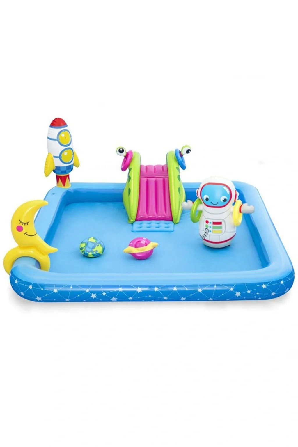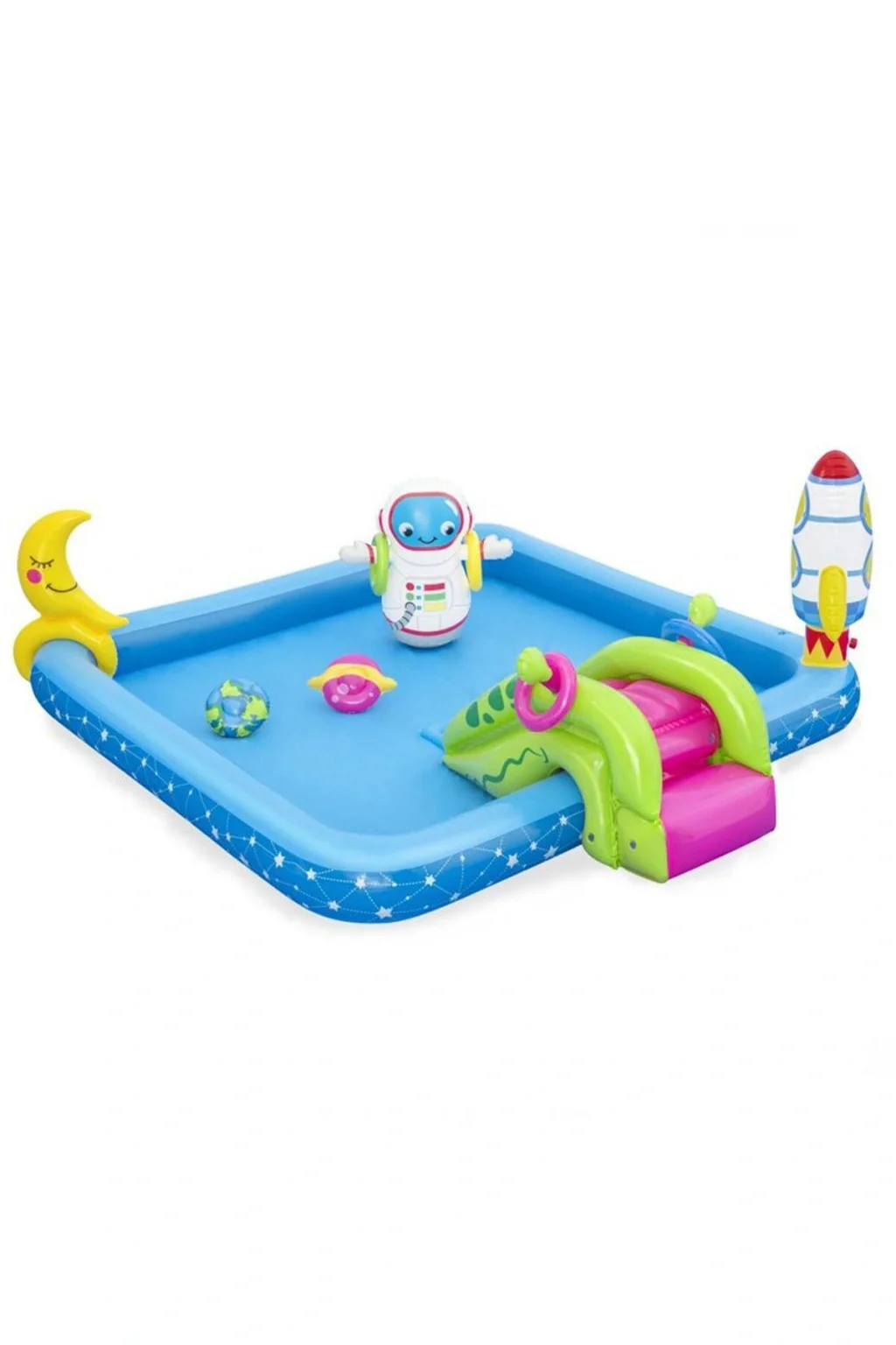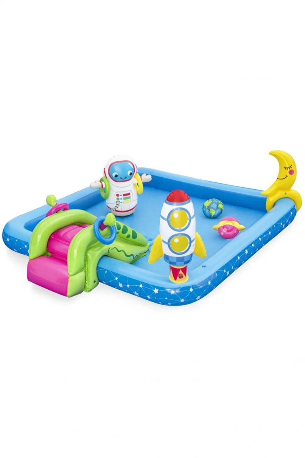 Bestway Astronot Temalı Şişme Oyun Parkı 53126 Çocuğunuza bahçenizin mahremiyetinde unutulmaz bir eğlence yaşatmak ister misiniz? Şişirilebilir oyun alanı, onu çocuğunuz için gerçek bir eğlence merkezine dönüştürecektir. ; Şişirilebilir kaydırak, su çeşmesi gibi şişirilebilir cazibe merkezlerine sahip bir yüzme havuzu, küçük çocuğunuzu kesinlikle memnun edecek ve oynamak için en sevdiği yer haline gelecektir. ; Havuz, yumuşak ama dayanıklı bir malzemeden yapılmıştır ve en küçük çocuklar için mümkün olduğu kadar güvenlidir. ; Başlıca ilgi çekici yerler, şişirilebilir bir kaydırak ve bir bahçe hortumuna bağlandığında suyun akacağı bir rokettir. ; Birden fazla çocuk oyun alanını aynı anda kullanabilir, her biri kendileri için eğlenecek bir şeyler bulacaktır. ; Ana Özellikler: - Şişme Kaydırak - Su Çeşmesi - Halka Fırlatma Oyunu - Şişme Roket - Şişme Ay - Şişme Astronot - Boyutlar: 239 cm x 206 cm x 86 cm - Malzeme: PVC - 308 litre kapasite - Önerilen yaş: 2 yıldan itibaren Ağırlık: 7 kg 1 Adet onarım yaması dahildir. ; Yaş Grubu : 2+ Yaş Barkodu: 6942138902976 Item No : BW53126 Kutu Ölçüleri : 42 x 42 x 12 cm. ; Desi Değeri: 8;