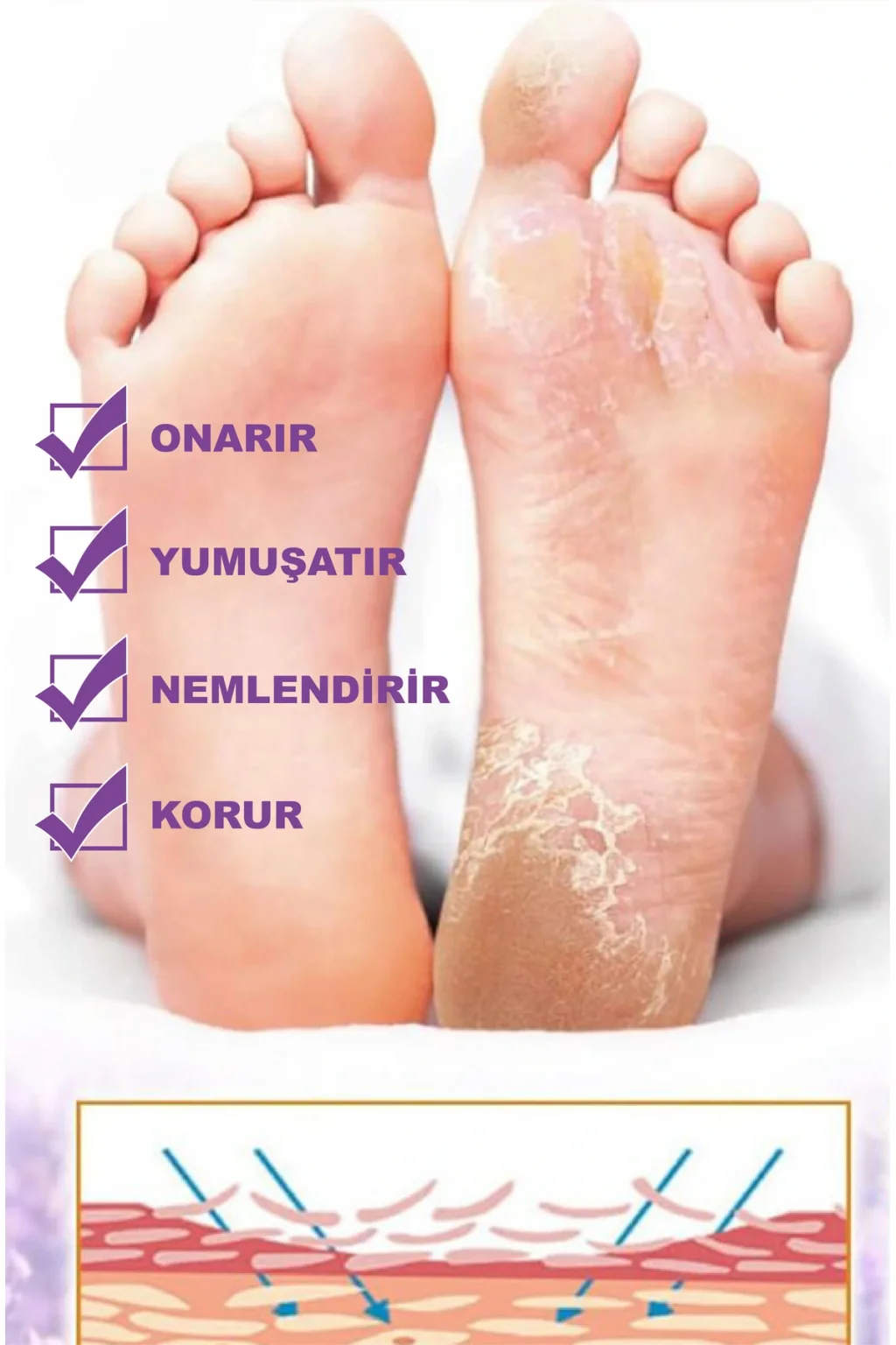 - Yumuşatır: Sertleşmiş topuk derisini kısa sürede esnek hale getirir.