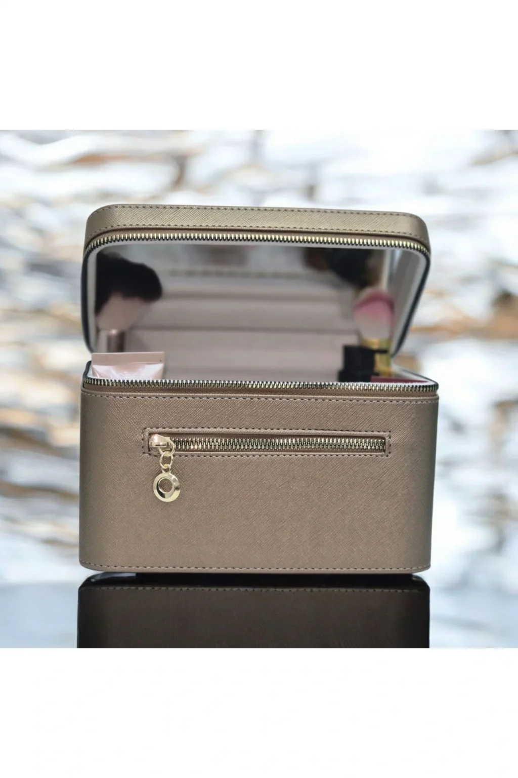 Ürün Açıklaması: Şıklığı ve düzeni bir arada sunan makyaj çantası ile tanışın! Aynalı, deri kaplama ve fermuarlı tasarımı ile bu makyaj çantası, hem evde hem seyahatte vazgeçilmeziniz olacak.; Geniş iç hacmi sayesinde fondöten, ruj, fırça, oje, cilt bakım ürünleri ve daha fazlasını kolayca taşıyabilirsiniz.; Ürün Özellikleri: Aynalı iç tasarım: Makyaj yaparken ekstra aynaya ihtiyaç kalmaz.; Deri görünümlü dış yüzey: Lüks ve modern bir görünüm sunar.; Fermuarlı kapama: Eşyalarınızı güvenle saklar.; Taşınabilir boyut: Hem çantanızda hem bavulunuzda kolayca taşınır.; Çok amaçlı kullanım: Makyaj çantası, kozmetik organizeri, seyahat çantası olarak ideal.; Kimler için uygun? Günlük makyaj malzemelerini düzenli tutmak isteyenler Sık seyahat eden kadınlar Hediye arayanlar (özellikle doğum günü, yılbaşı, sevgililer günü için harika bir seçenek!) Moda Fiesta kalitesiyle şimdi sipariş verin, şıklığı ve düzeni yanınıza alın! #seyahatçantası #günlükkullanım #çantaiçindüzen #valizorganizasyon #bakımçantası #makyajçantasımodelleri