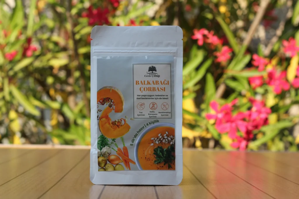İçindekiler: Balkabağı, Tatlı Patates, Havuç, Soğan, Zeytinyağı, Su.