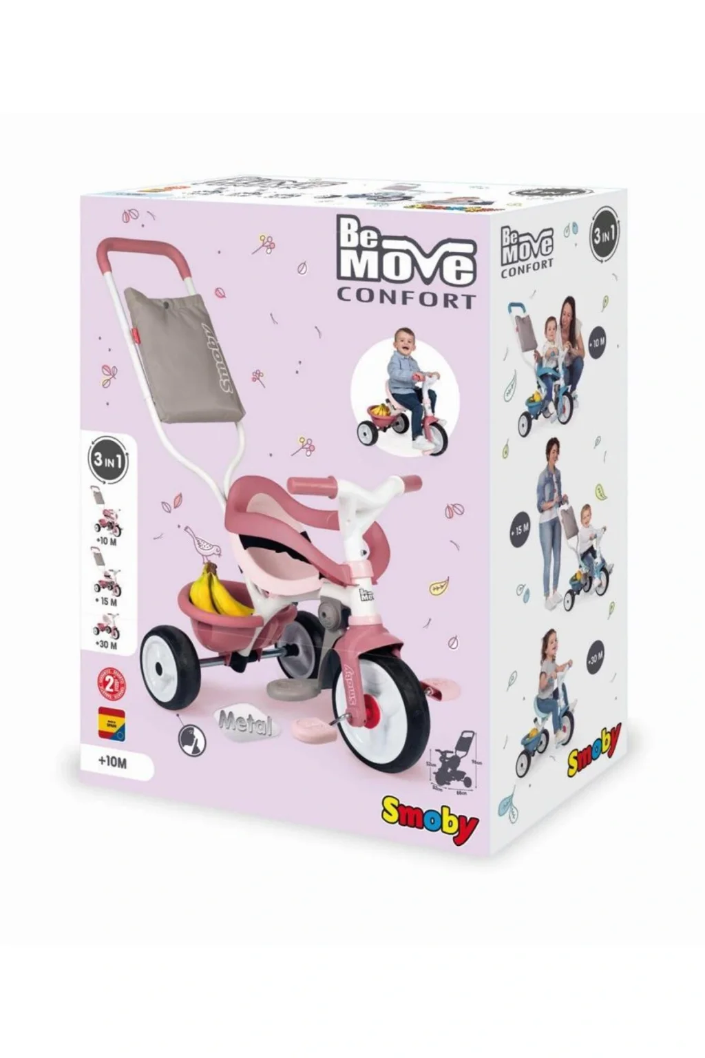Smoby Be Move Comfort 3'ü1 Arada Bisiklet - Pembe 740415 Smoby'nin Be Move Comfort üç tekerlekli bisiklet; üçü bir arada üç tekerlekli bisiklet ve bebek arabasıdır.; Ebeveyn tutma barı, ergonomik korumalı koltuk, ayarlanabilir emniyet kemeri ve geniş ayak dayama yerleri sayesinde 10 aylıktan itibaren çocuklar rahat ve korunaklı bir şekilde otururlar.; Ebeveynler, tutma barı aracılığıyla hız kontrolü sağlar ve sürüş konusunda yardımcı olabilirler.; Çocuk tek başına pedal çevirip sürüş sağlayabilecek yaşa geldiğinde, tüm güvenlik ekipmanları birkaç basit adımda çıkarılabilir.; Ergonomik koltuk, çocuğunuzun vücuduna 3 seviyede uyum sağlar.; Dayanıklı metal çerçeve, değiştirilebilir pedal sistemi , direksiyon kilidi, çıkarılabilir çanta ve kaymaz pedallara sahip donanım, çocuğunuzun ilk yılları için ideal bir arkadaş haline getirir.; Yeni tasarlanmış gidon, tutamak işlevi görür.; Güvenlik için direksiyon kısıtlaması ek stabilite sağlar.; Arka tarafında bulunan selesi ile çocuğunuzun en sevdiği oyuncaklarını da macera turlarında yanınıza alabilirsiniz.; EVA lastikleri fısıltı kadar sessiz hareket sağlar.; İspanya'da yüksek kaliteli malzemeden üretilmiştir.; Ürün boyutları (UxGxY): 68 x 52 x 101 cm.; Yaş önerisi: 10 aylıktan itibaren çocuklar için uygundur.