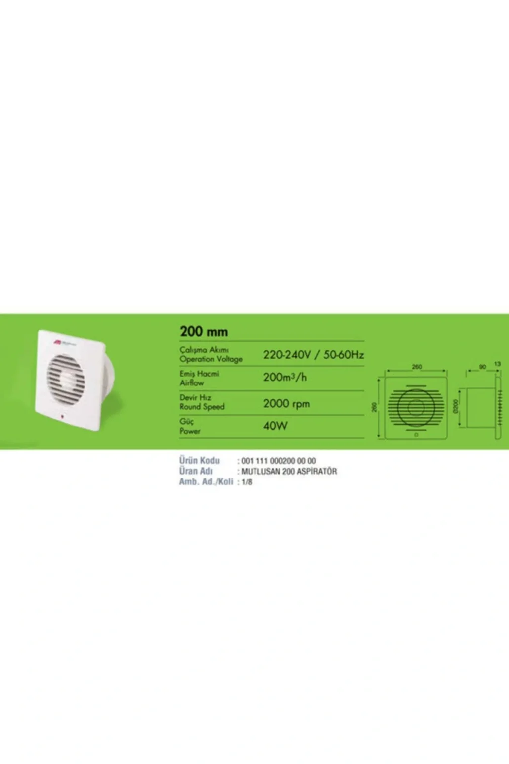 100lük - 120lik - 150lik - 200lük seçenekleri ile ; Banyo, tuvalet, mutfak, kiler, çamaşır odası, garaj, işyeri, sigara içilen ortamlarda vb. Yerlerin havalandırılması için uygundur. ; Çok ince ve zarif ön görünümüyle dekoratif mekanların vazgeçilmez bir parçasıdır. ; Yüksek kalite abs plastik ile imal edilmiş ürün kötü koku, nem ve benzeri dış etkenlere karşı en iyi korumayı sağlarken ilk günkü görünümü asla yitirmez. ; Toza maruz kalan ön kapak çok kolay şekilde sökülerek silinip temizlenebilir. ; Motor ve gövde tasarımıyla ses seviyesi en alt düzeye indirgenmiştir. ; Kendi kendini yağlayan motor yatakları sessiz ve uzun ömürlü performans sağlamaktadır. ; Aspiratör cuvar, tavan, pencere vb. Yerlere rahatlıkla dikey ya da yatay olarak bağlantı yapılabilir. ; Teknik özellikler ; Şık ve ince tasarım ; Sessiz çalışma özelliği ; Banyo,tuvalet havalandırma fanı ve aspiratörü ; 220v ile çalışır ; 10 | 12 | 15 | 20 cm delik çap genişliği ; 100-120-150-200%27lük banyo,tuvalet havalandırma aspiratörü ;