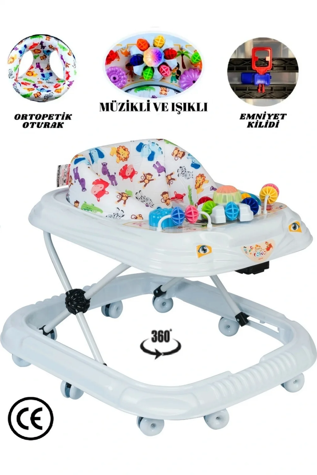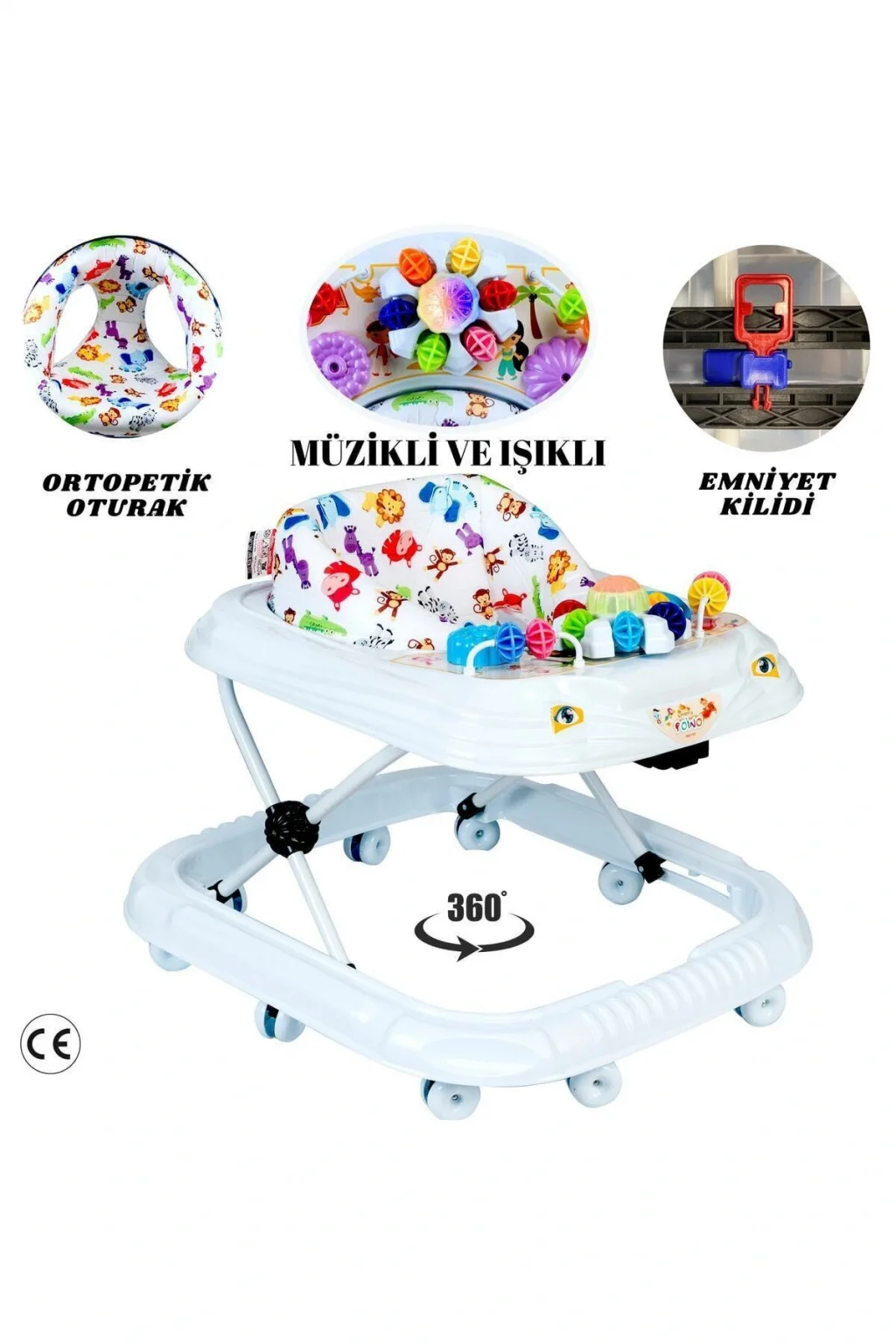 Yürüteç 10 Ayak Örümcek Modeli Yrtç22 % 100 montajlı ve kullanıma hazır Sünger takviyeli koltuk döşemesi 7 adet oyuncak ve aksesuar 10 adet tekerlekli tek yürüteç HALIDA RAHAT GİDEBİLME Ts en 1273/en 71; 73 standartlarına uygun 3 kademe yükseklik ayarlı Döşeme desenleri farklılık gösterebilir Portatif katlanabilir özellik Hafif ve kullanışlı Hitap ettiği yaş aralığı: Minimum 6 ay bebekler için 6; 12 ay Maksimum 12 kg kadar bebekler için;
