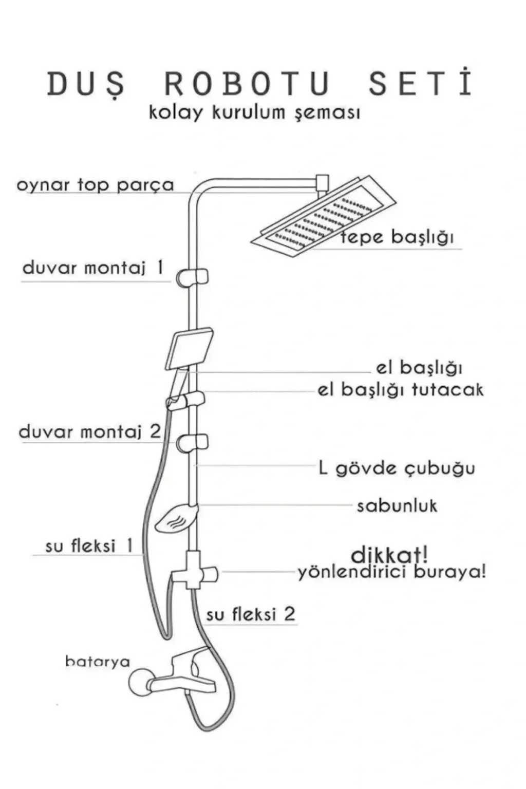 15 gün içinde ücretsiz iade. Detaylı bilgi için tıklayın.; Bu ürün Lapush Concept tarafından gönderilecektir.; Robot Duş Seti Geniş duş başlığı ile duşunuzu doya doya alın! İster tepe duşu ister el duşu ile banyonuz zevkli geçsin! Şık tasarımı ile banyonuz modern görünsün. Duş kancası ile birlikte gövdeye monte sabunluk mevcuttur. Krom kaplamalıdır.Paslanmaz dayanıklıdır. Ürün Boyutları: 21 cm 93 cm. Renk: Metal. Paket İçeriği: Tepe duş başlığı Krom sabunluk Krom tutacaklar 2 adet hortum 1 adet sabunluk 1 adet krom boru 1 adet yönlendirici 1 adet el duşu 2 adet boru tutacak 1 adet el duşu tutacağı; Bu üründen en fazla 10 adet sipariş verilebilir. 10 adetin üzerindeki siparişleri Trendyol iptal etme hakkını saklı tutar.; Kampanya fiyatından satılmak üzere 100 adetten fazla stok sunulmuştur.; İncelemiş olduğunuz ürünün satış fiyatını satıcı belirlemektedir.; Bir ürün birden fazla satıcı tarafından satılabilir. Ürün liste ve detay sayfalarında tüketici memnuniyeti göz önüne alınarak fiyat avantajı, teslimat hızı, iade oranları ve genel hizmet kalitesine göre belirlenmiş puanı en yüksek satıcı görünür satıcı olur. Diğer satıcılar, ürün detay sayfasında alternatif olarak listelenirler.; Listelenen fiyat 19 Ekim 2021 tarihine kadar geçerlidir.;